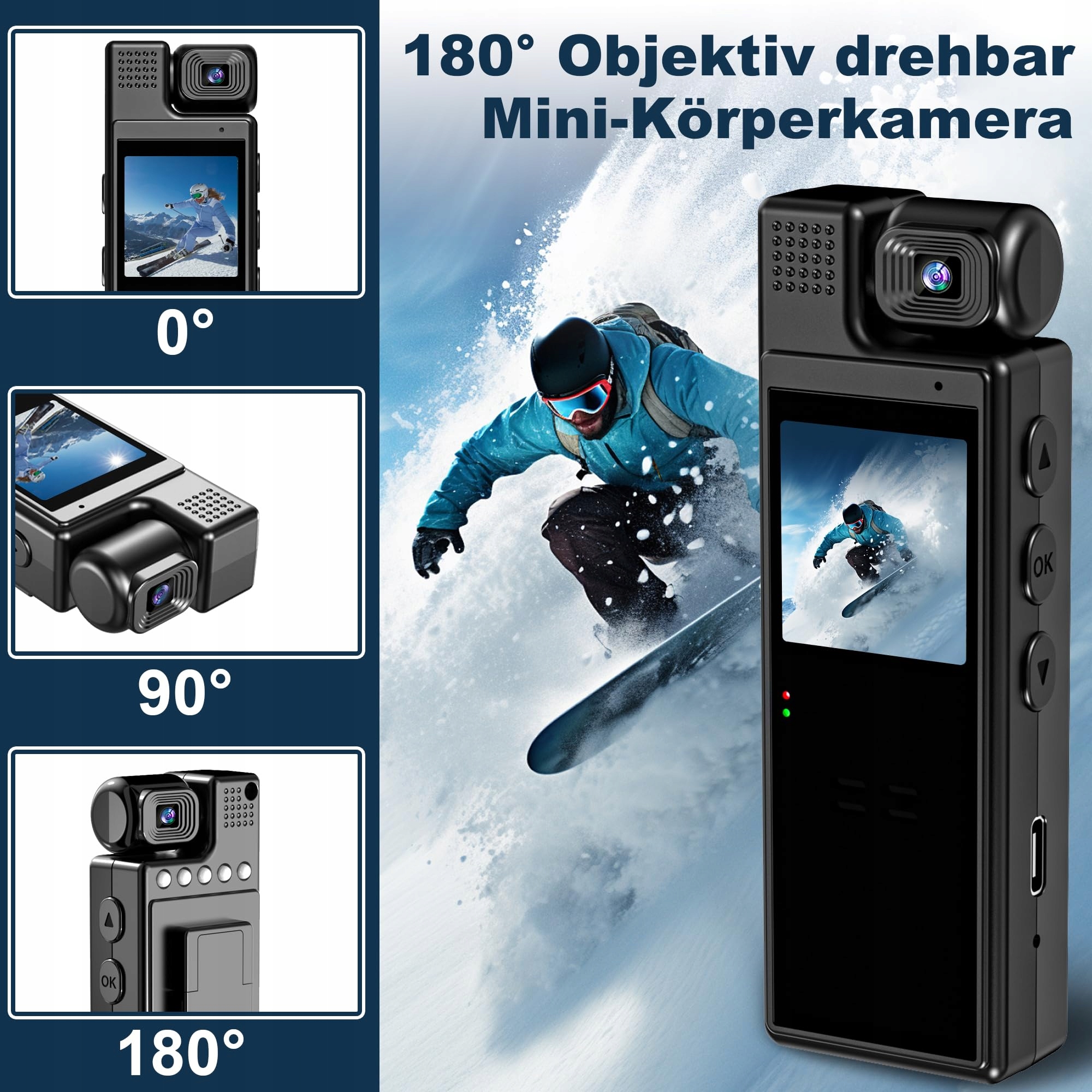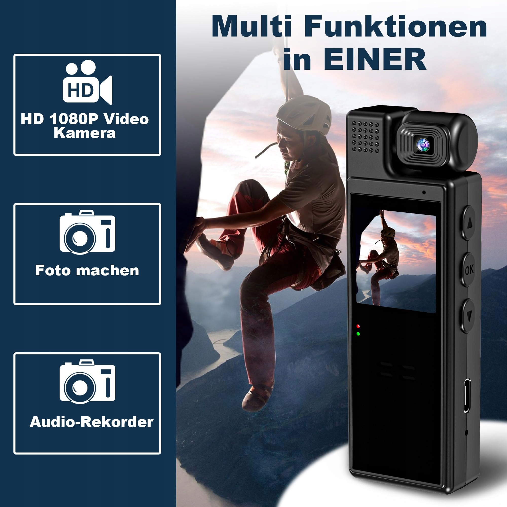 HD 1080P Przenośna mini kamera na ciało: Z rozdzielczością HD 1080P i 1,3-calowym ekranem LCD, ta przenośna mini kamera wideo rejestruje każdy szczegół i zapewnia wizualną jakość HD, zanurzając się w żywe i wyraźne nagrania wideo. Idealna do różnych aktywności: podróże, sporty takie jak wędrówki, narciarstwo, camping, jazda na rowerze, ważne nagrania takie jak konferencje, spotkania, sale lekcyjne oraz bezpieczeństwo wewnątrz i na zewnątrz, bezpieczeństwo osobiste i egzekwowanie prawa.