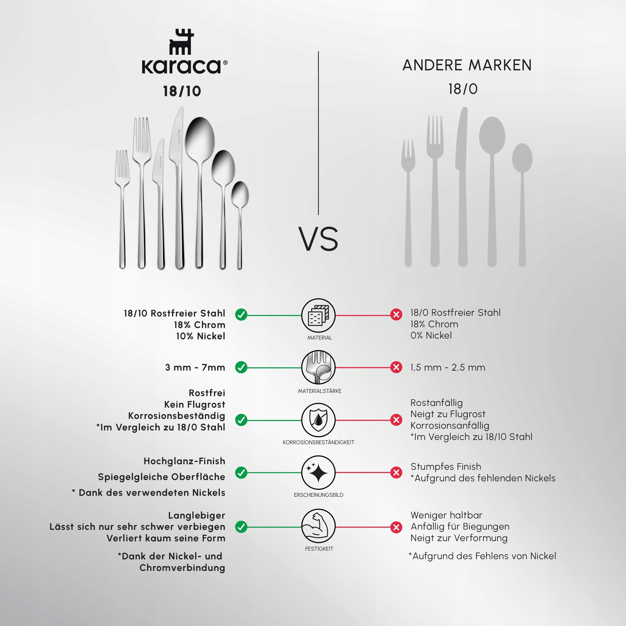 Wyjątkowo solidna konstrukcja: Doświadcz jakości dzięki sztućcom, które w dłoni czują się solidnie i masywnie, a dzięki grubej obróbce (3 mm - 7 mm) zapobiegają wyginaniu się.