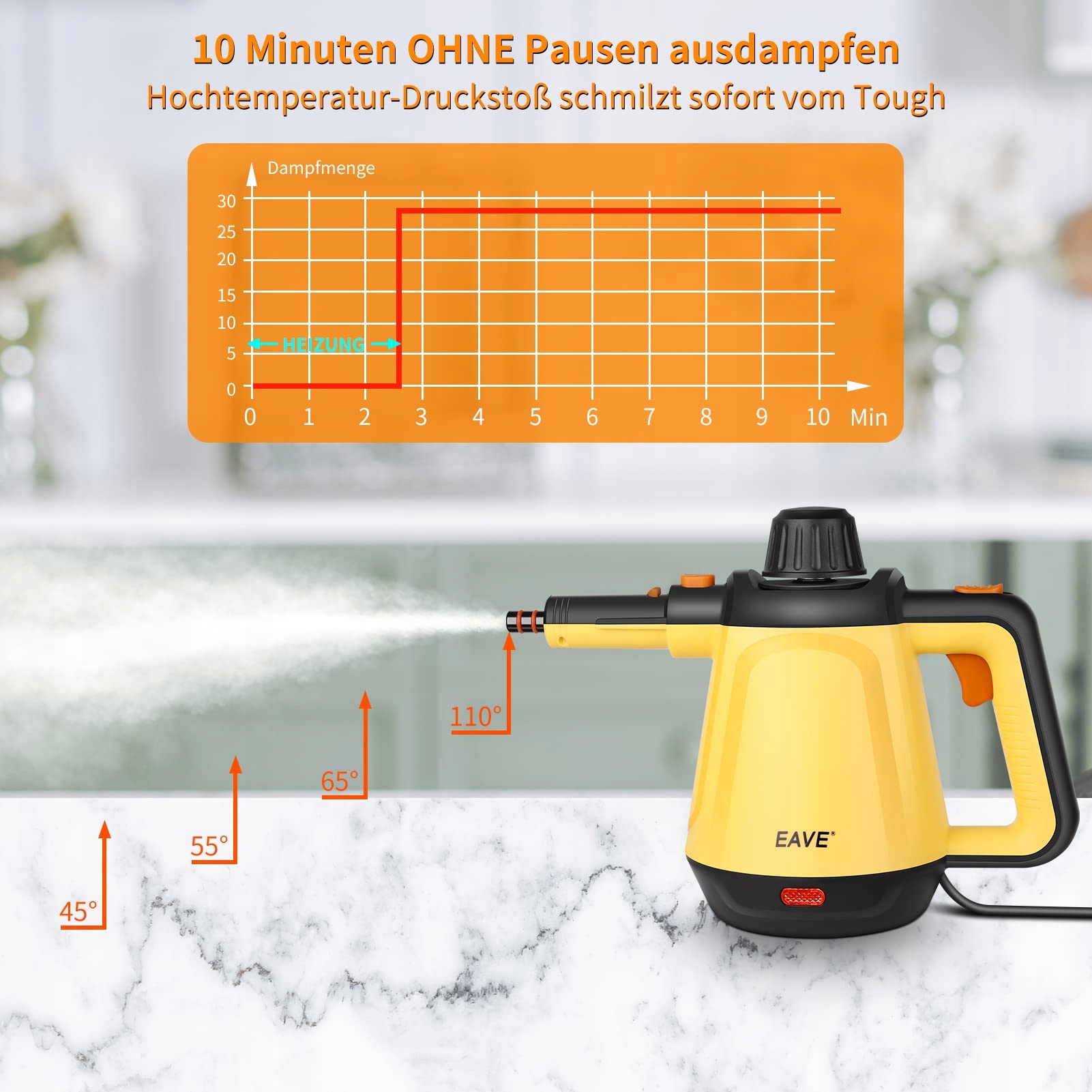 【STAŁE ciśnienie pary】 Ręczny parowiec Eave może parować BEZ PRZERW przez około 10 minut. Nasz ulepszony ręczny parowiec do czyszczenia oszczędza czas i zwiększa wydajność.