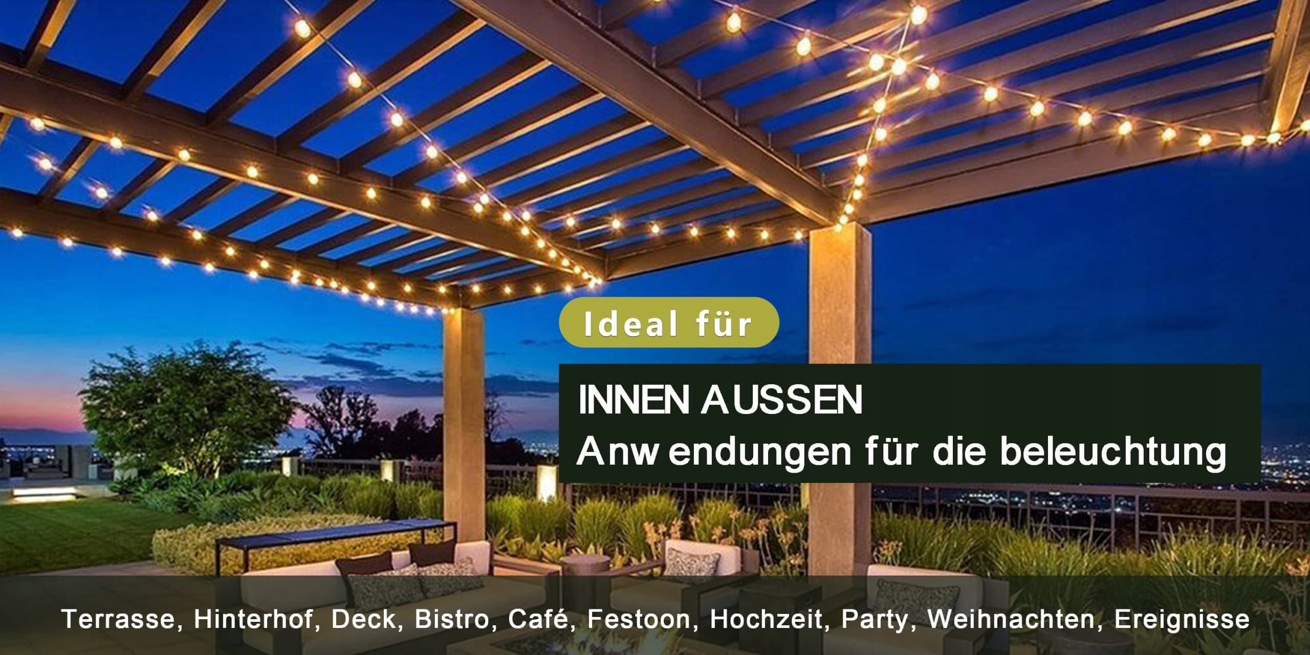 [Energooszczędna LED Lichterkette] Nasza zewnętrzna lichterkette energooszczędna wykorzystuje technologię źródła światła LED, która charakteryzuje się niskim zużyciem energii oraz wysoką wydajnością i trwałością. Dzięki zastosowaniu wysokiej jakości żarówek LED uzyskano wysoką transmisję przy ciepłobiałej jasności. Jest to idealny zamiennik dla tradycyjnych żarówek wolframowych.
