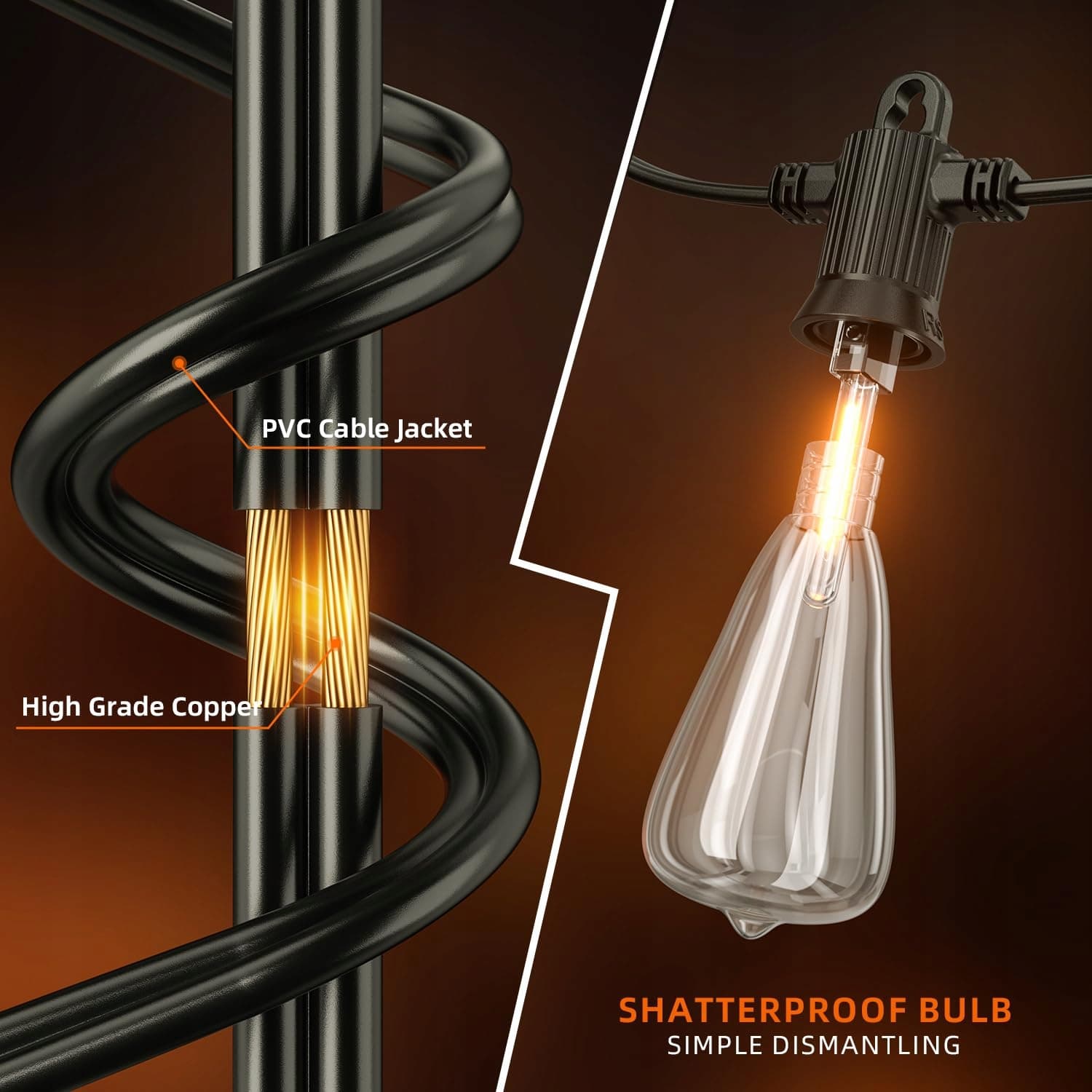 [Ciepłobiała Lichterkette do Ogrodu] Nasze lichterkette na zewnątrz mają ciepłe białe oświetlenie 2200K, które tworzy ciepłą, komfortową i przytulną atmosferę. Trwały przewód oświetleniowy ma wysoką elastyczność i odporność na temperaturę, co zapewnia długotrwałe i całoroczne użytkowanie.