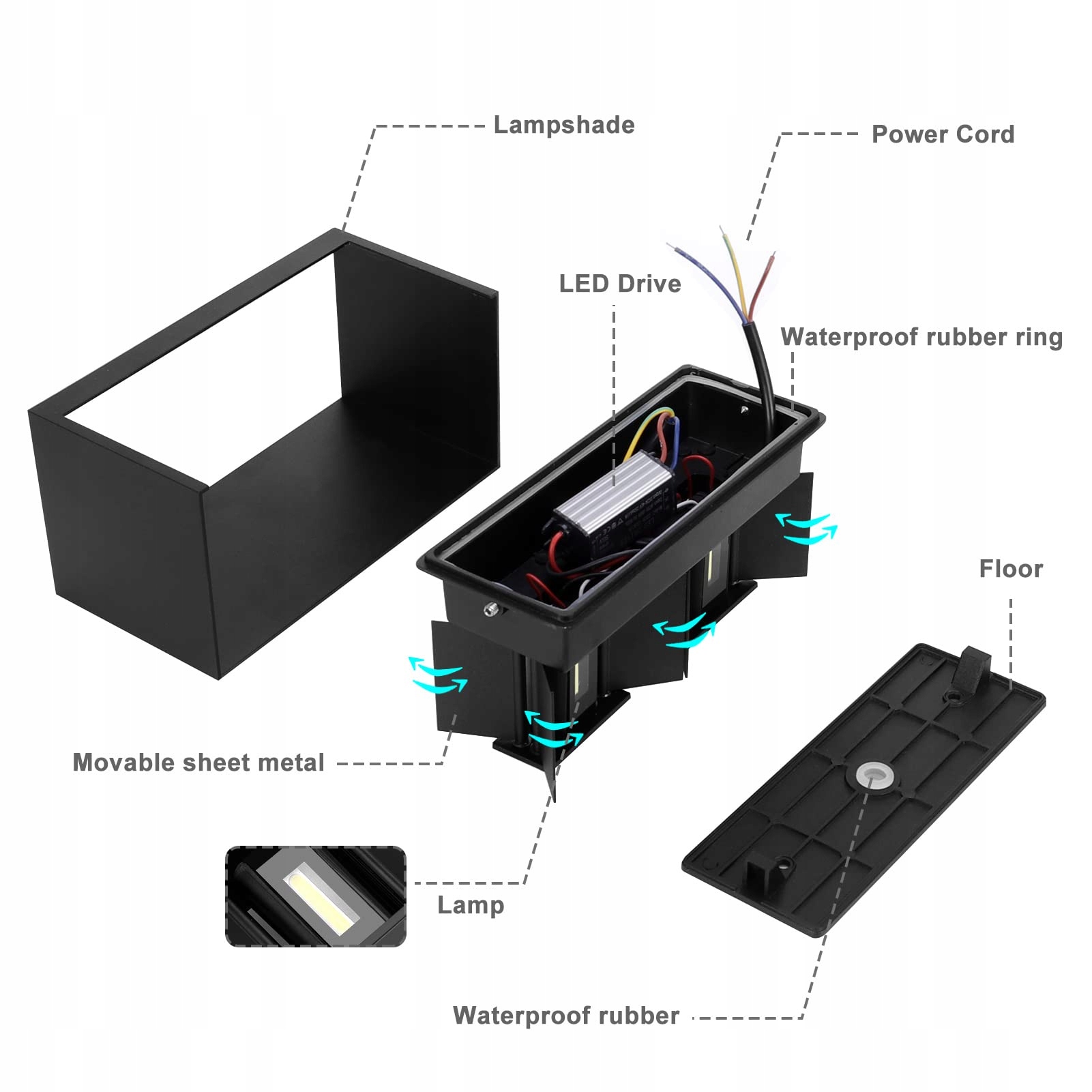 Unikalna lampa ścienna z podwójną głowicą: To ulepszona kwadratowa lampa ścienna LED. W rzeczywistości ma 2 jednostki świetlne. Dzięki temu ma większą jasność i zasięg oświetlenia, kupując jedną lampę otrzymujesz efekt dwóch lamp, co pozwala zaoszczędzić więcej pieniędzy
