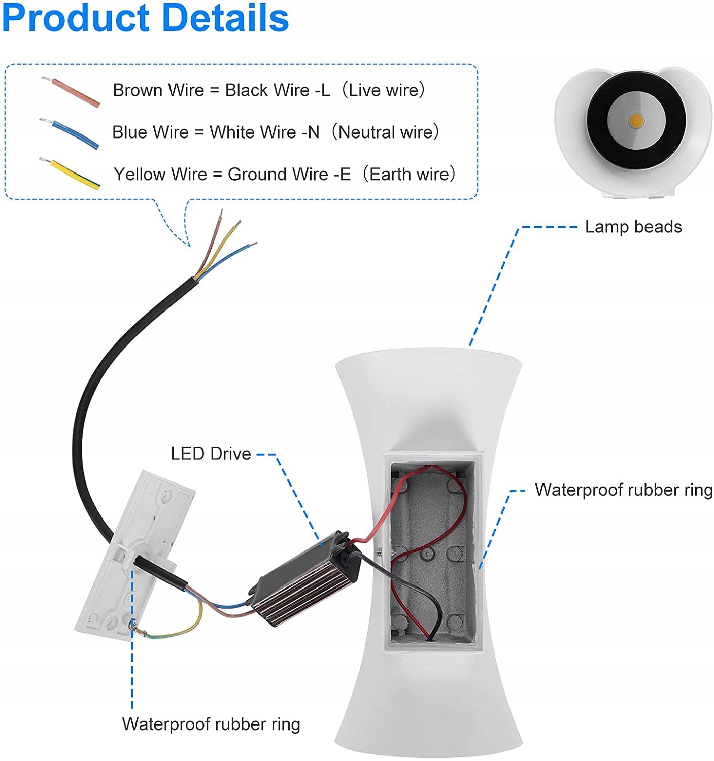Wysokiej jakości chipy LED i sterownik: 10W, używa wysokiej jakości 2x5W diod LED. Strumień światła bardziej równomierny, miękki. Niskie zużycie energii, żywotność do 50 000 godzin. Wysokiej jakości wodoodporny sterownik LED, wbudowany inteligentny układ IC, szeroki zakres napięcia 85-265V, odpowiedni do różnych środowisk napięciowych