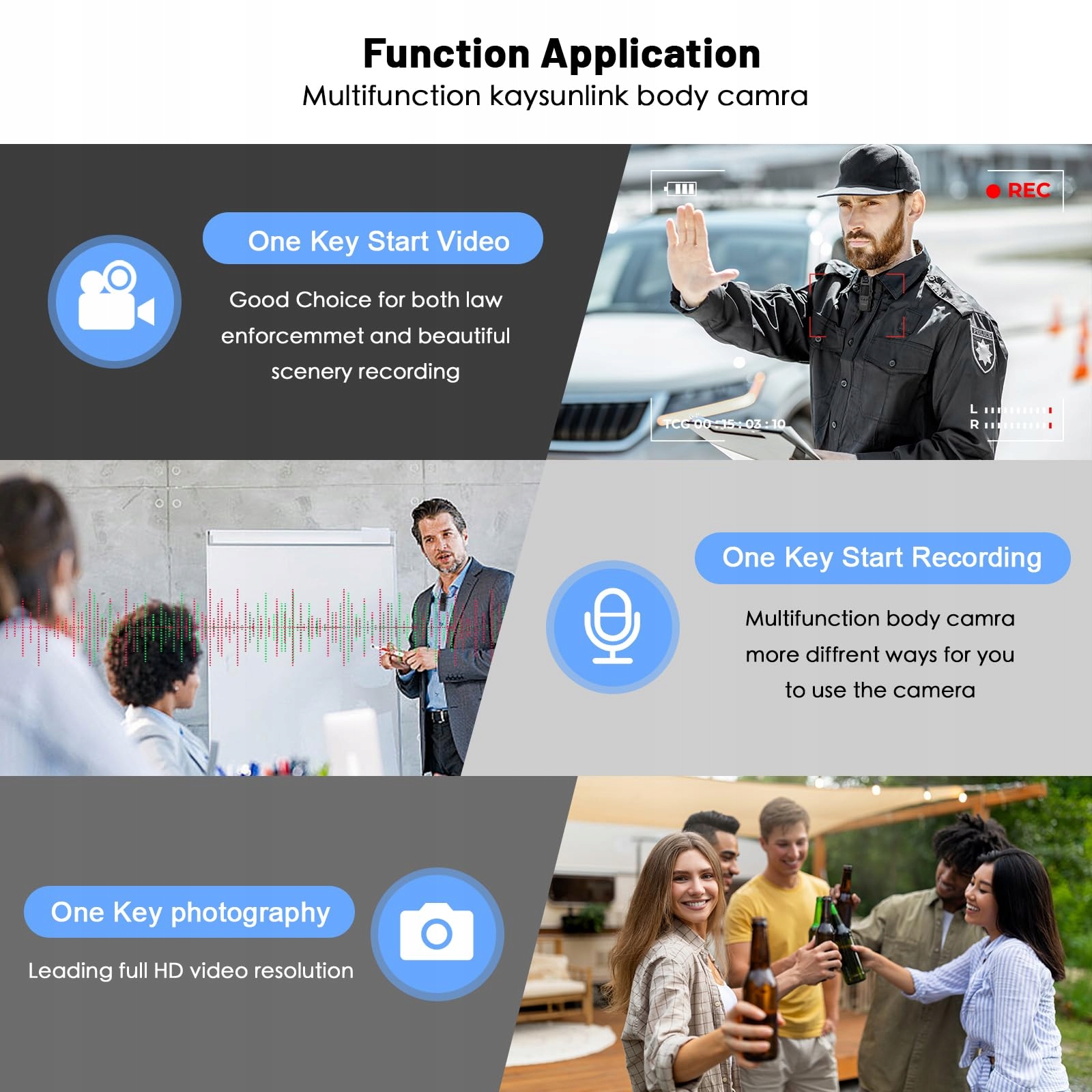 kaysunlink 4K kamera na ciało z nagrywaniem audio i wideo, tryb WiFi, mini policja, przenośna, mała, osobisty kamerzysta, sport, akcja, rejestrator wideo na zewnątrz (128 GB)