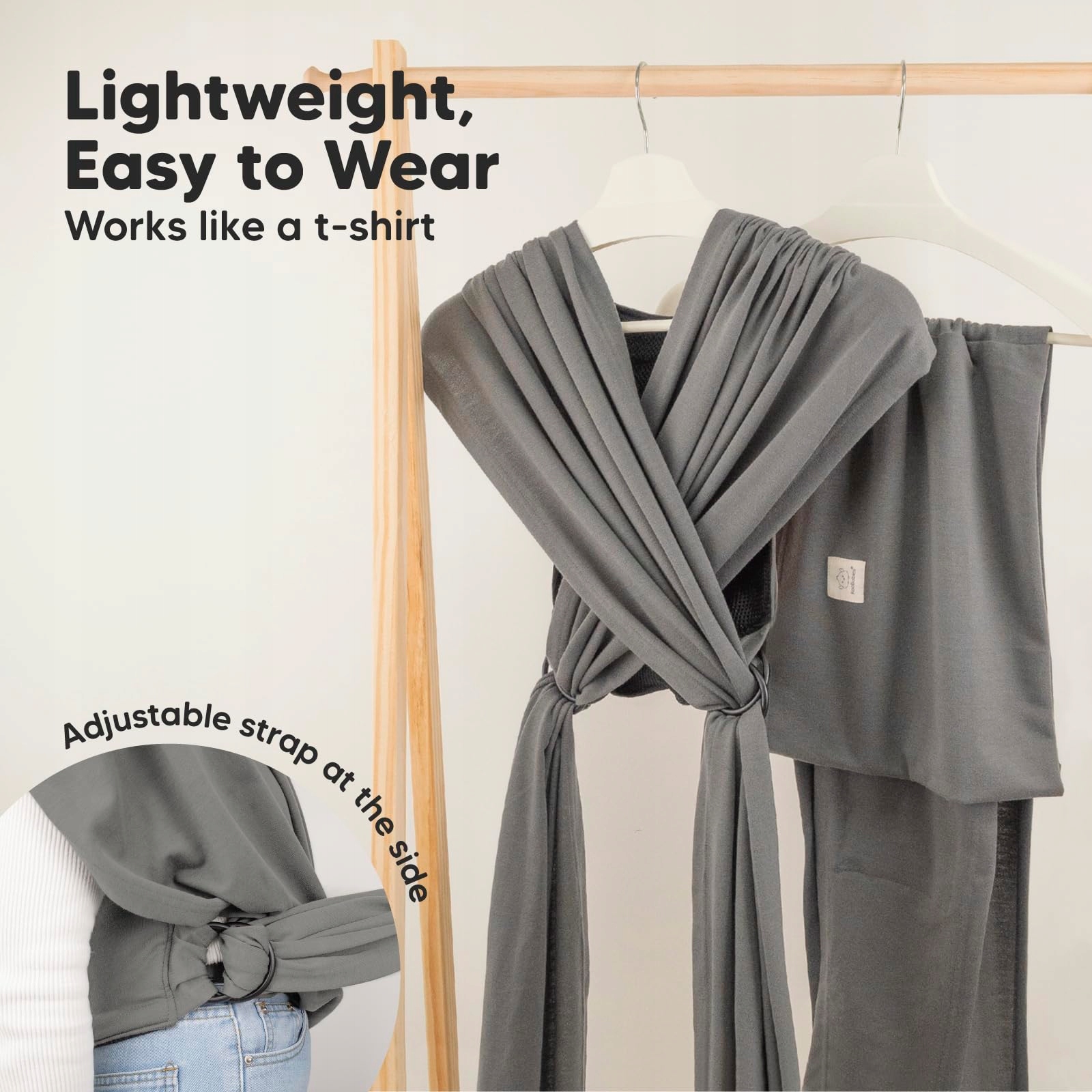 Łatwa do dopasowania – Łatwo dostosuj swoją chustę D-Lite bez wiązania za pomocą bocznych pierścieni i regulowanych pasków. Krzyżuj, nawlekaj, napinaj. Rozwiązuj dzieci, podnoś pierścienie, luzuj.