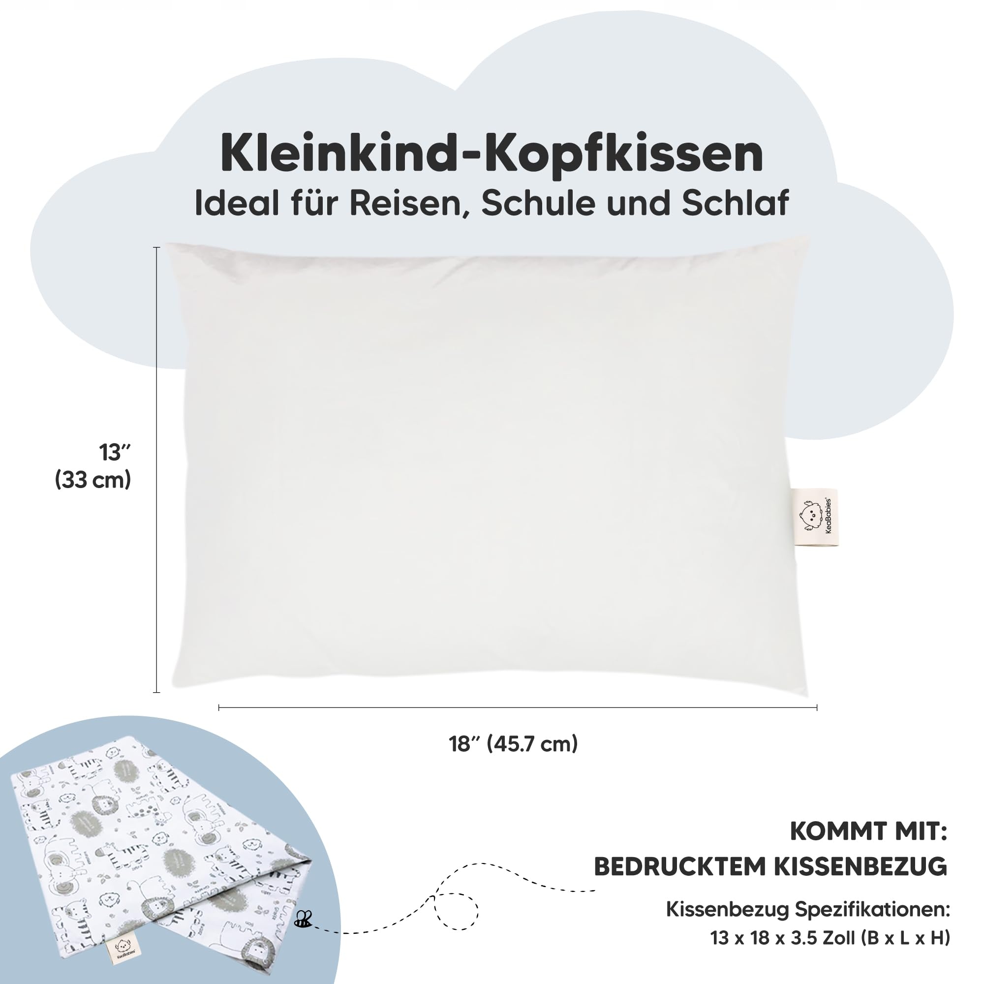 Poduszka dla małego dziecka z poszewką - Miękka poduszka z bawełny organicznej dla dzieci do spania - Poduszka dla małego dziecka do prania - Poduszka dziecięca dla małych dzieci (KeaSafari)