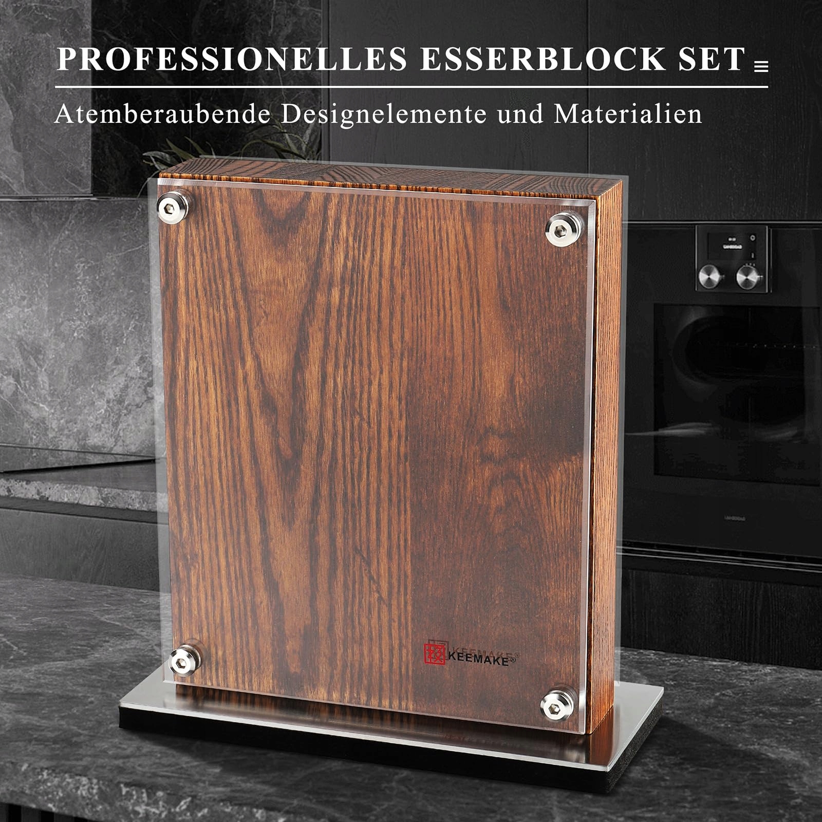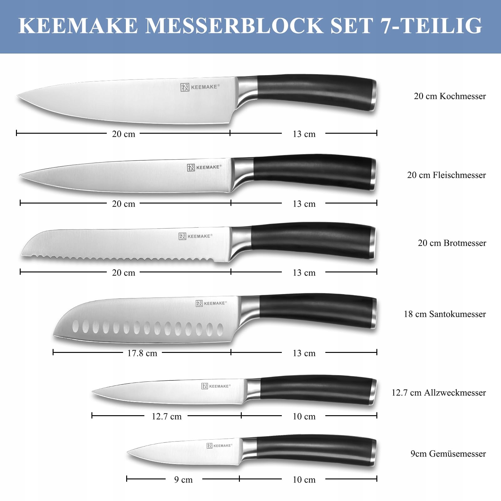 KEEMAKE Zestaw Noży Kuchennych 7-częściowy z Drewnianym Blokiem