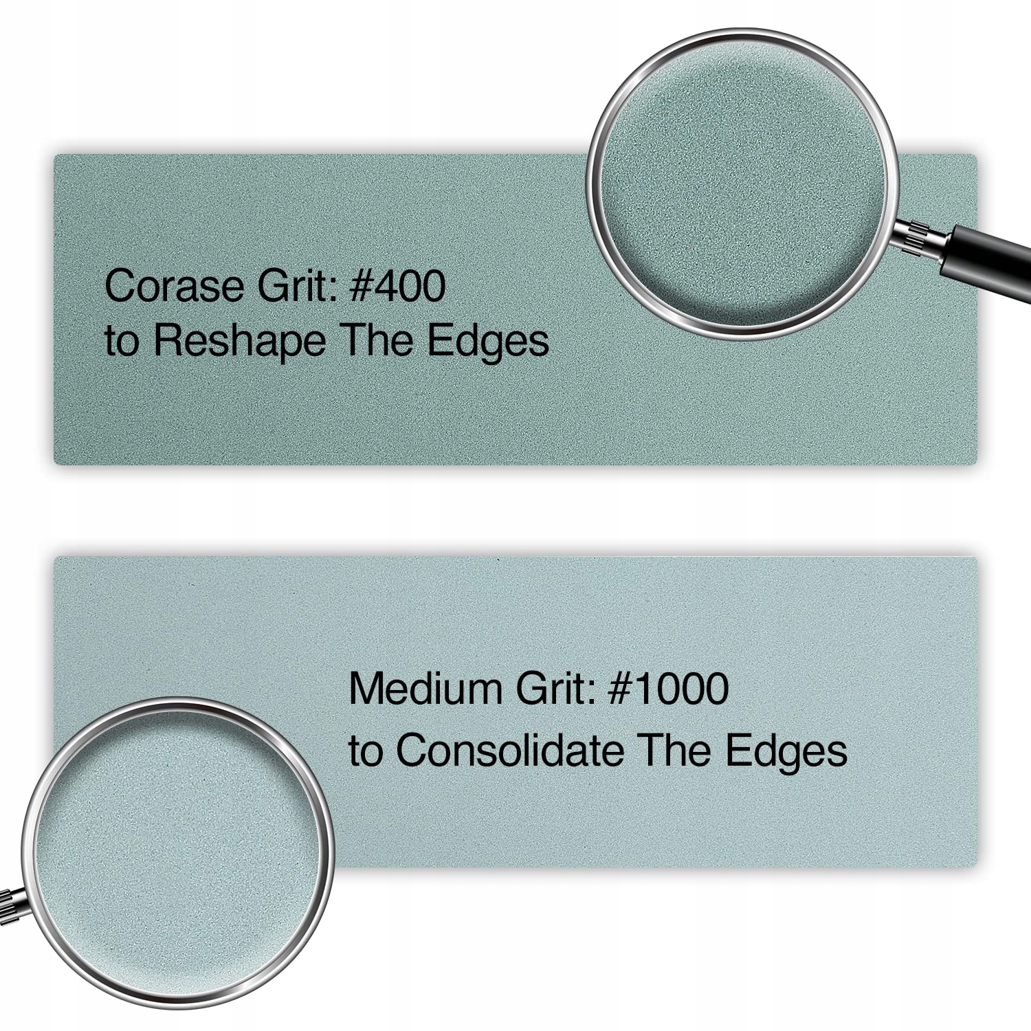 Wykonany z wysokiej jakości węglika krzemu, strona o granulacji 400 jest odpowiednia do codziennego ostrzenia, takiego jak naprawa noży z dużymi krawędziami tnącymi oraz polerowanie noży. Granulacja 1000 pomoże Ci wygładzić noże po użyciu granulacji 400
