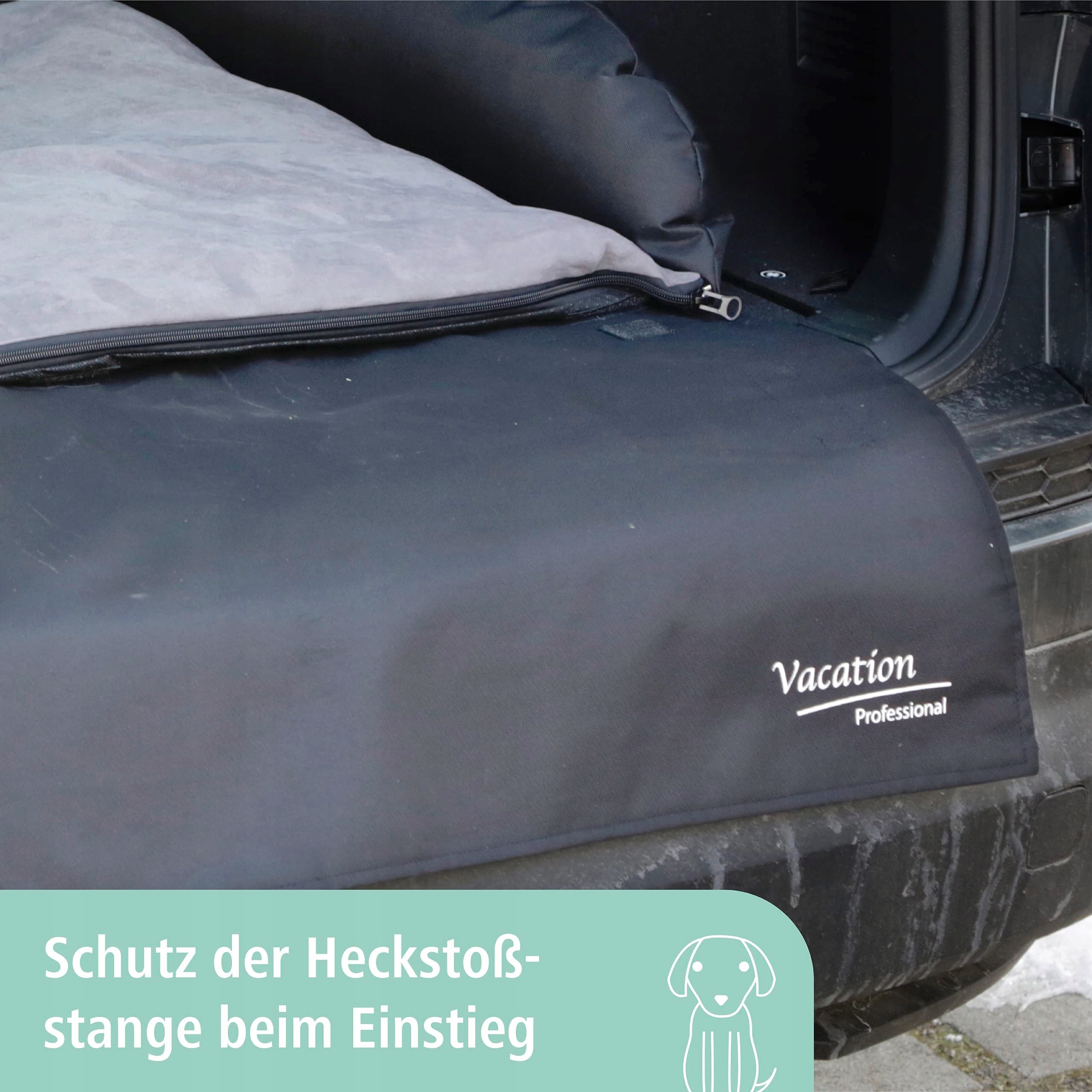 Kerbl Pet Legowisko / Poduszka dla psów do bagażnika, Wyściełana powierzchnia do leżenia, pralna, Ochrona przed brudem i zarysowaniami, Z ochroną zderzaka, Czarny/Szary, 95x75x18 cm