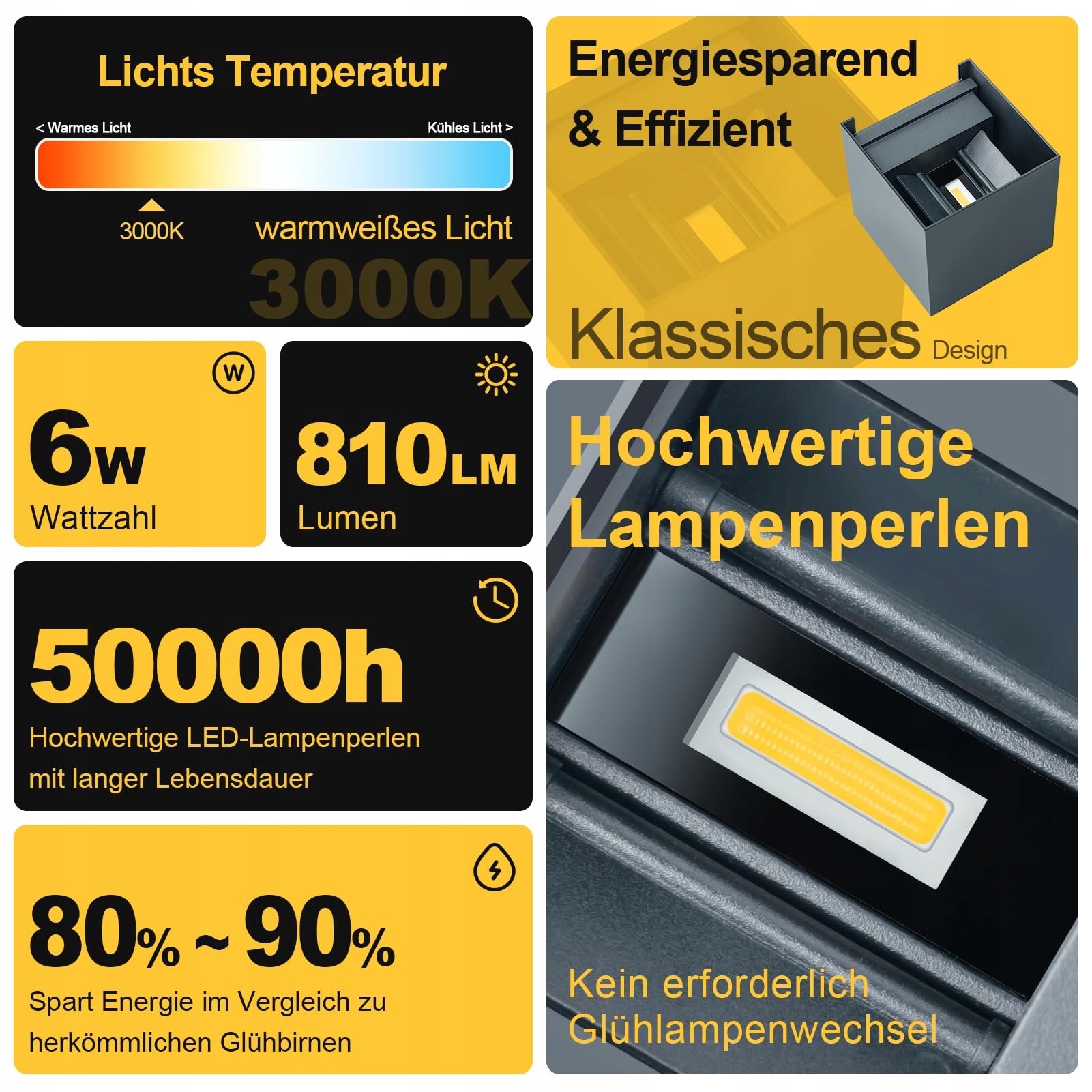 Wielofunkcyjna i łatwa w montażu: Ciepłe światło tworzy przytulną atmosferę. Jasność lampy może być stosowana w różnych scenariuszach do różnych funkcji. Może służyć jako lampa przy drzwiach wejściowych lub reflektor ogrodowy. Ponadto może być używana na tarasie, balkonie, w garażu, na schodach, w sypialni, łazience, salonie, werandzie, korytarzu, przejściu, galerii, holu i innych miejscach, aby prezentować Twój dom nocą.