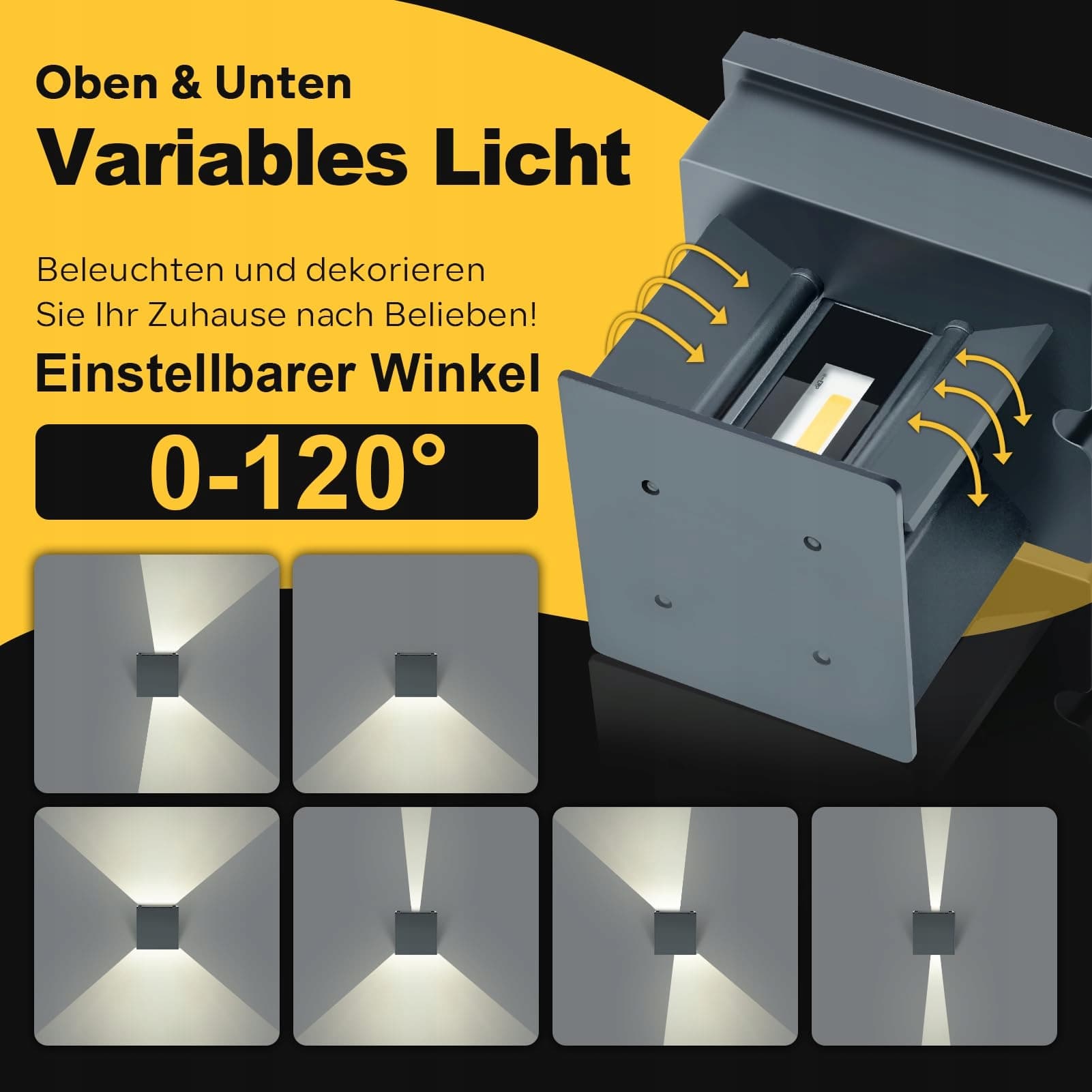 Regulowany kąt świecenia góra i dół: Te lampy emitujące światło w górę i w dół mają cztery suwaki, które można dowolnie regulować, aby oświetlić dom według własnych potrzeb.