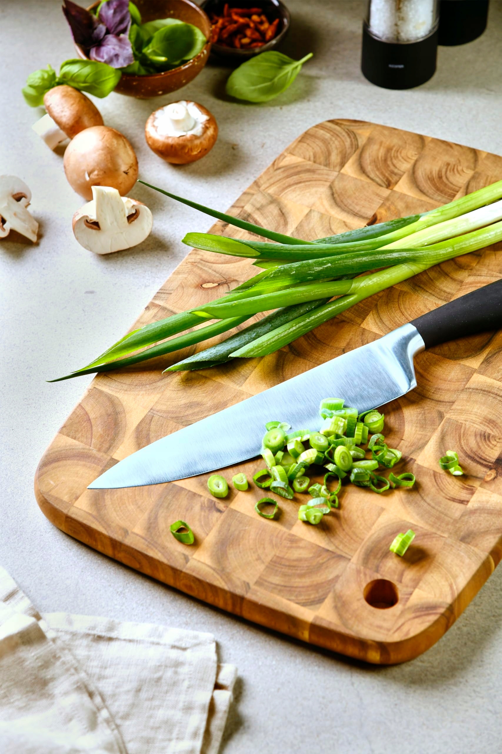 KESPER | Profesjonalna deska do krojenia z otworem do zawieszenia, materiał: drewno akacjowe (drewno końcowe), wymiary: 32 x 22 x 2 cm, kolor: brązowy, naturalny | 28152
