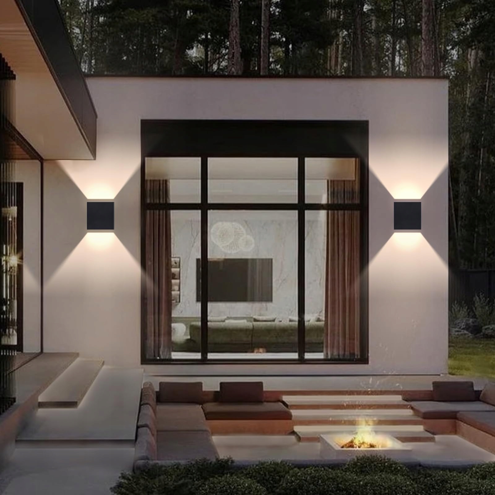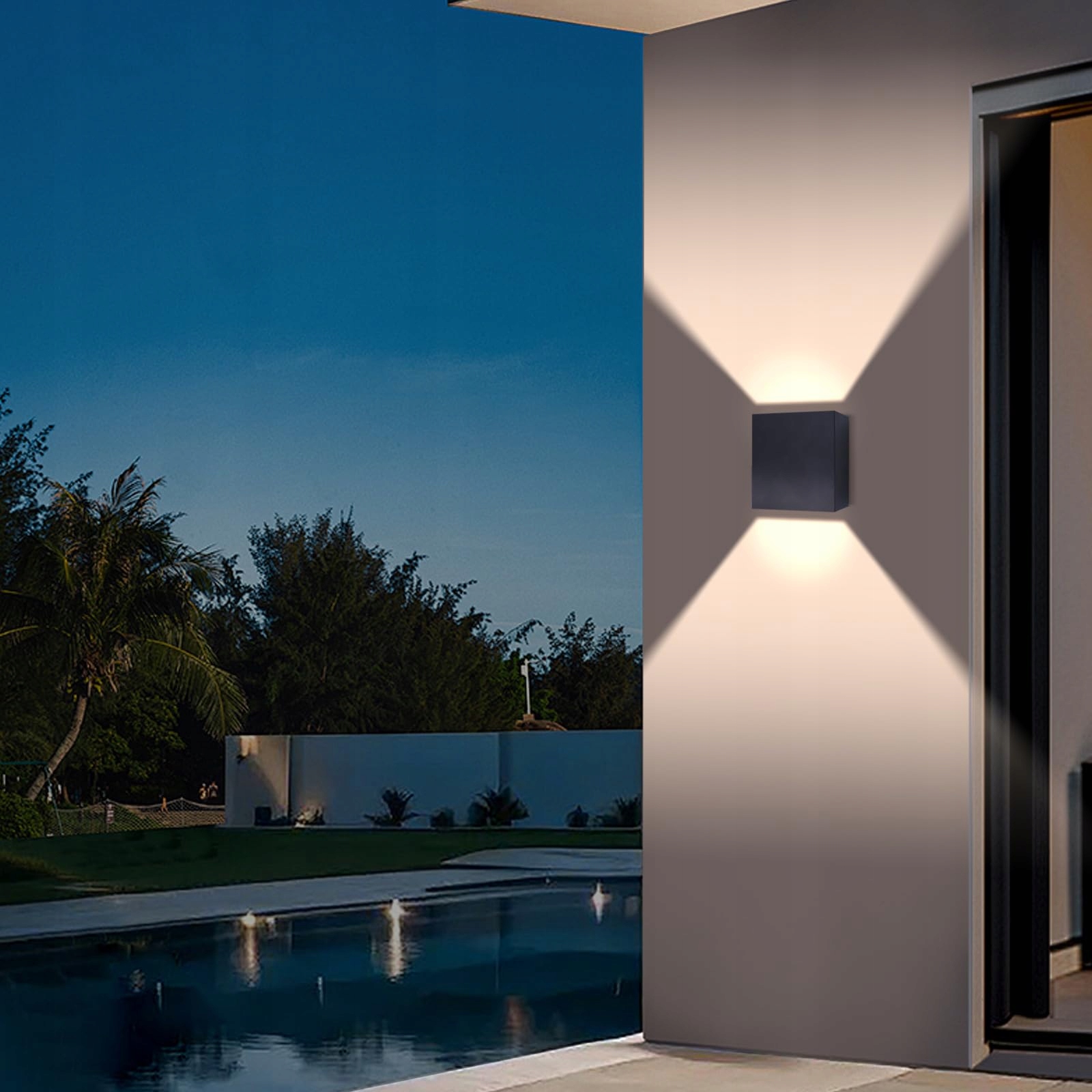 KICAAO Lampa ścienna LED do wnętrz zestaw 2 szt., 10x10x5cm lampa ścienna z oświetleniem góra-dół, regulowany kąt świecenia, oświetlenie zewnętrzne ciepła biel 6W 3000K IP65 aluminium lampa ścienna do wnętrz/na zewnątrz