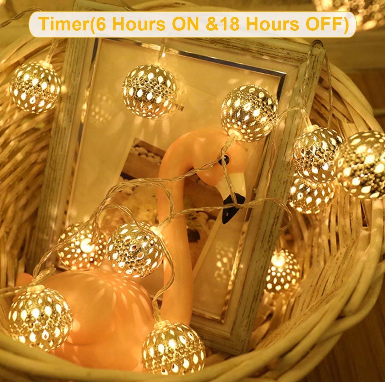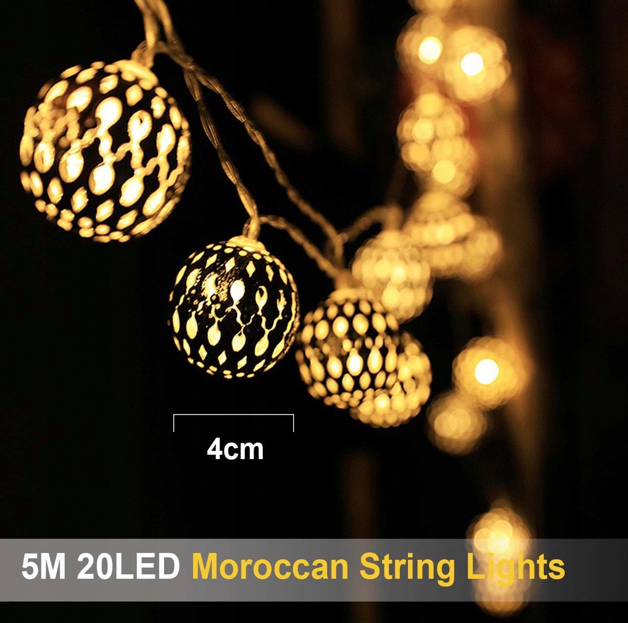 Kimuwote Marokańska Girlanda Świetlna na Baterie, 5M 20 LED Kule Świetlne Ciepłobiała z Timerem, Marokańska Orientalna Dekoracja do Wnętrz, Pokoi, Ślubów, Imprez, Ramadanu, Świąt Bożego Narodzenia