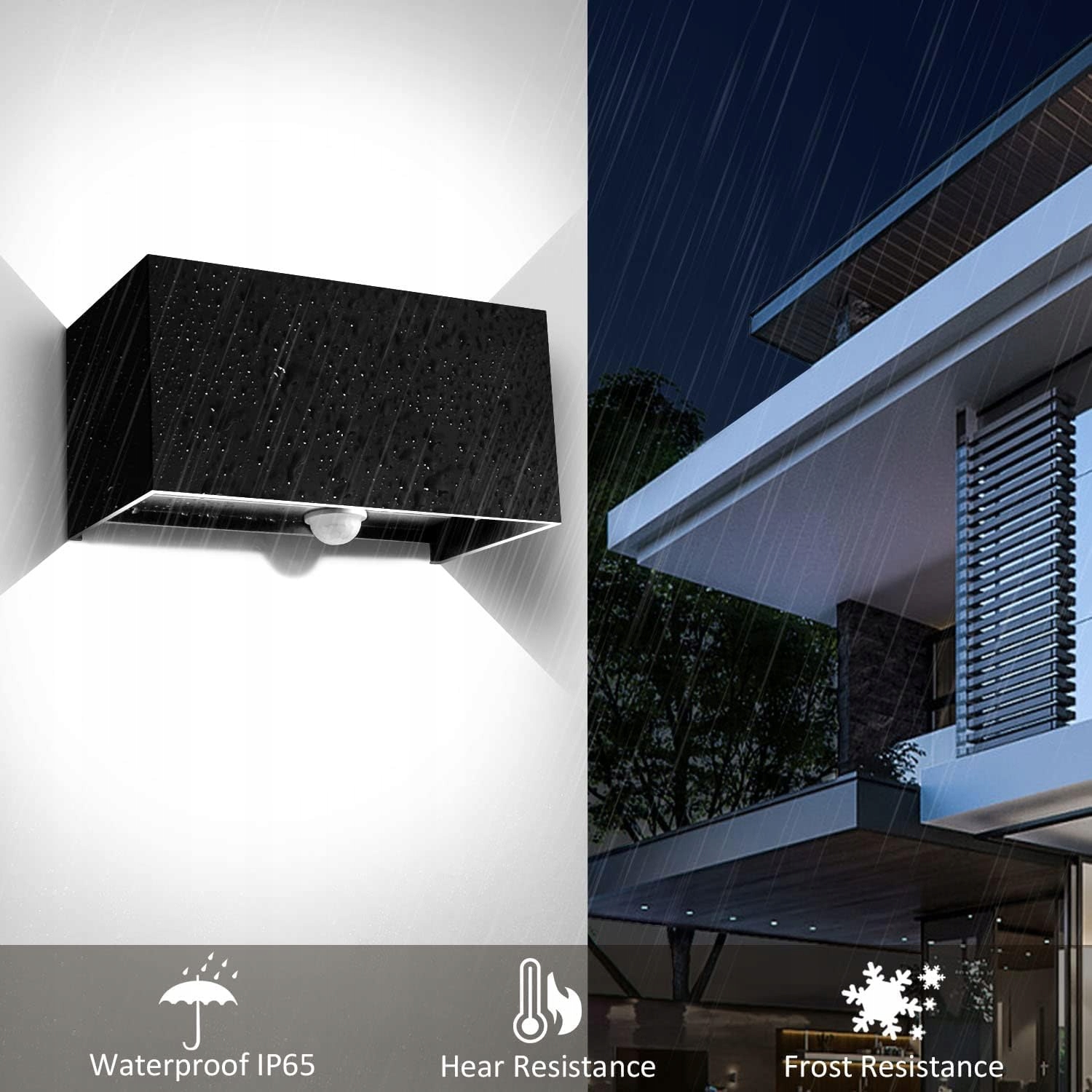 【Wodoodporność IP65】: Lampa ścienna zewnętrzna posiada certyfikat IP65, wysokiej jakości aluminiowa obudowa i dobre powłoki sprawiają, że lampa jest wodoodporna i pyłoszczelna. Sterownik LED ma funkcję zapobiegania zwarciom i może być bezpiecznie używany na zewnątrz.