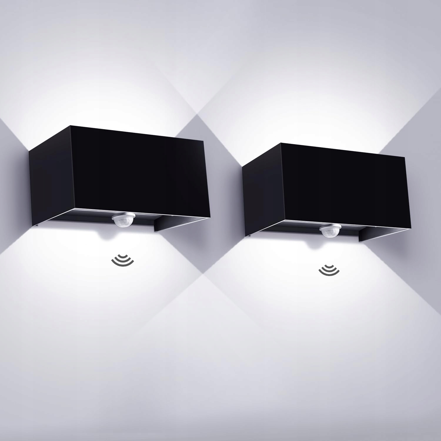 Kingwei 20W Lampa ścienna na zewnątrz/wewnątrz z czujnikiem ruchu IP65 6000K Zimna biel Lampy ścienne z regulowanym kątem świecenia Lampa z czujnikiem ruchu czarna Lampa ścienna (2 sztuki)