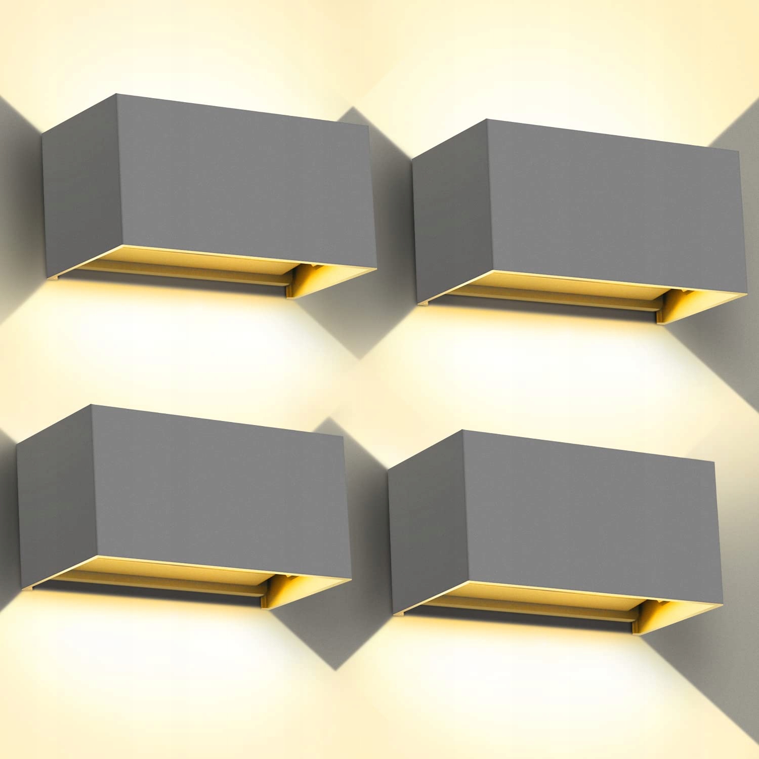 Kingwen 20W LED Aussenleuchten 4 sztuki Wandleuchte Wewnętrzne/Zewnętrzne 3000K Ciepłobiała LED Aussenlampen Prostokątne Regulowany Kąt Świecenia Up Down Wandlampe IP65 Wodoodporne. (Szary)