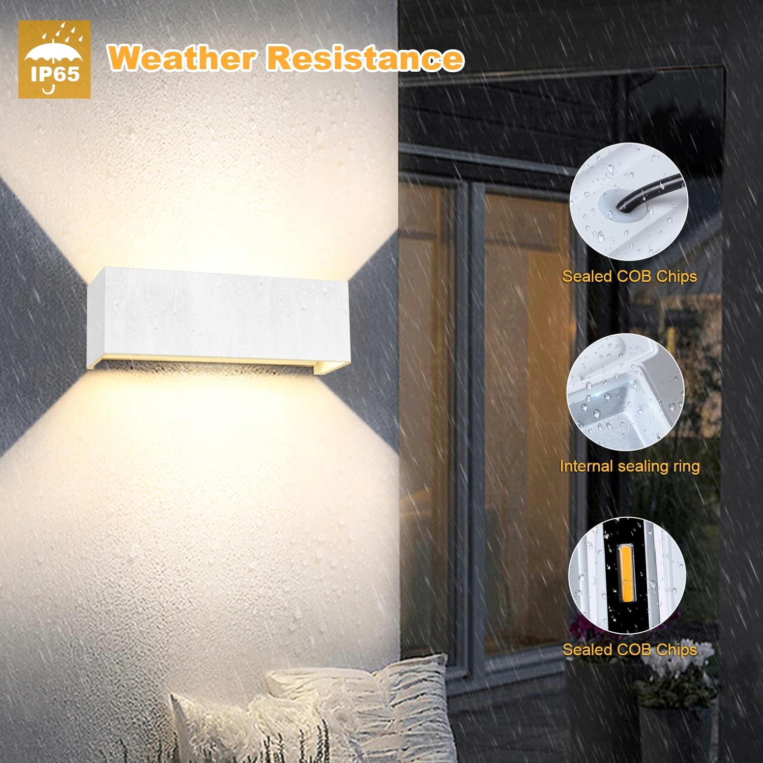 [Wodoodporny IP65] Lampa zewnętrzna jest wyposażona w gumowy pierścień z okrągłym otworem i gumowy pierścień z uszczelką, który można używać wewnątrz lub na zewnątrz, w salonie, sypialni, łazience, korytarzu, na balkonie, na schodach, w przejściu, przy bramie garażowej itp.