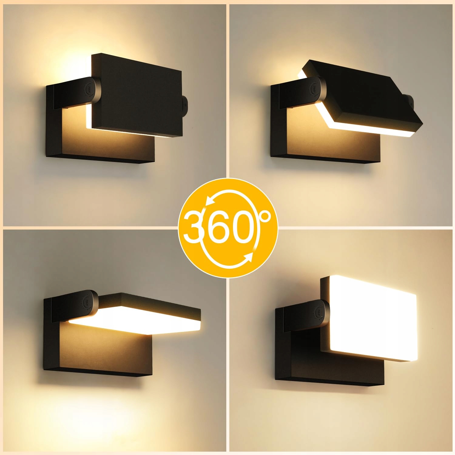 【Lampa ścienna o wysokiej wydajności】 Obrotowa o 360° LED lampa ścienna zewnętrzna posiada wysokiej jakości diody LED i ma żywotność do 50 000 godzin, co jest znacznie dłuższe niż w przypadku tradycyjnych żarówek, co oznacza, że możesz cieszyć się stabilnym i trwałym oświetleniem przez długi czas.