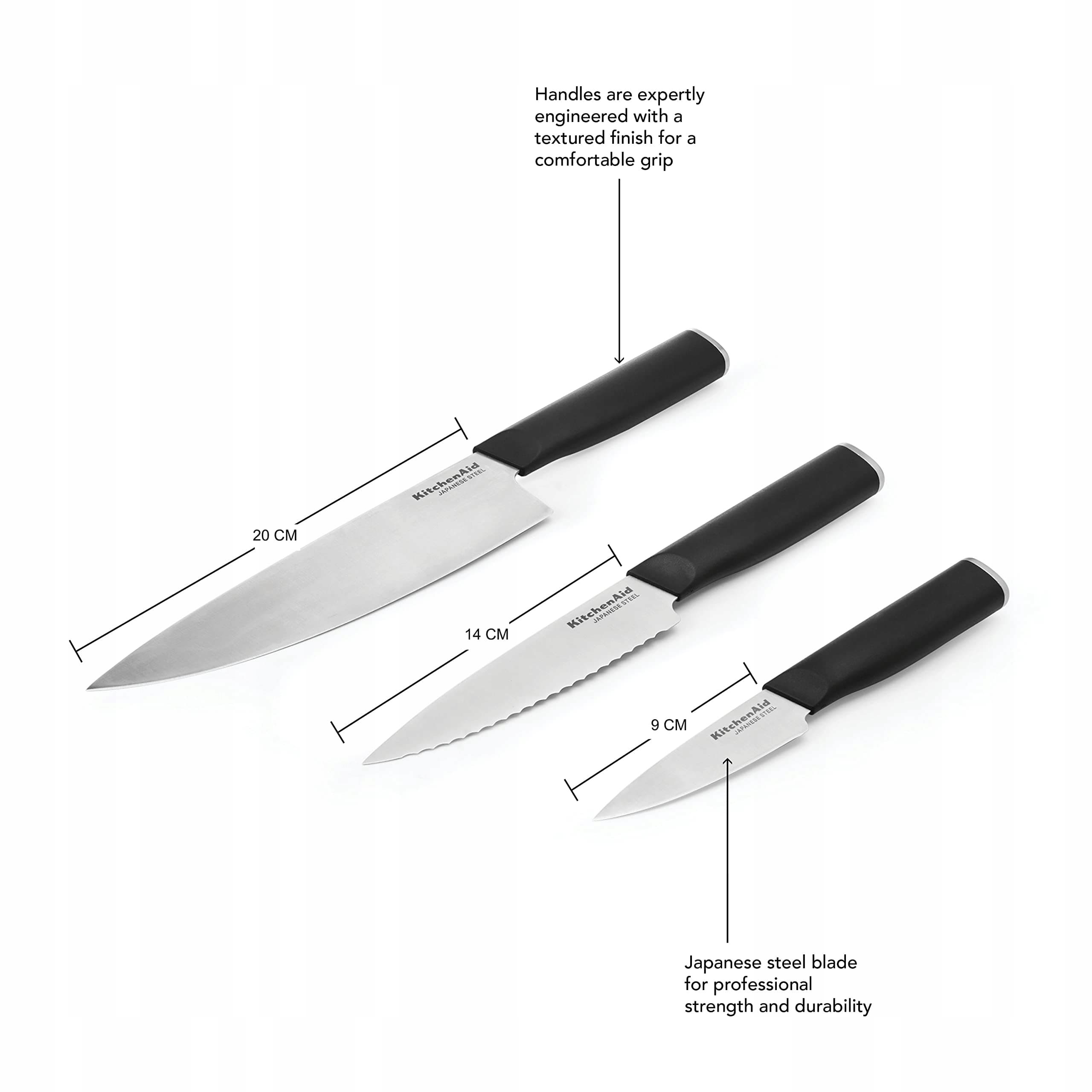 KITCHENAID Zestaw 3 Noży Japońskich Z Osłoną Na Ostrza Twarda Stal | Premium Supply