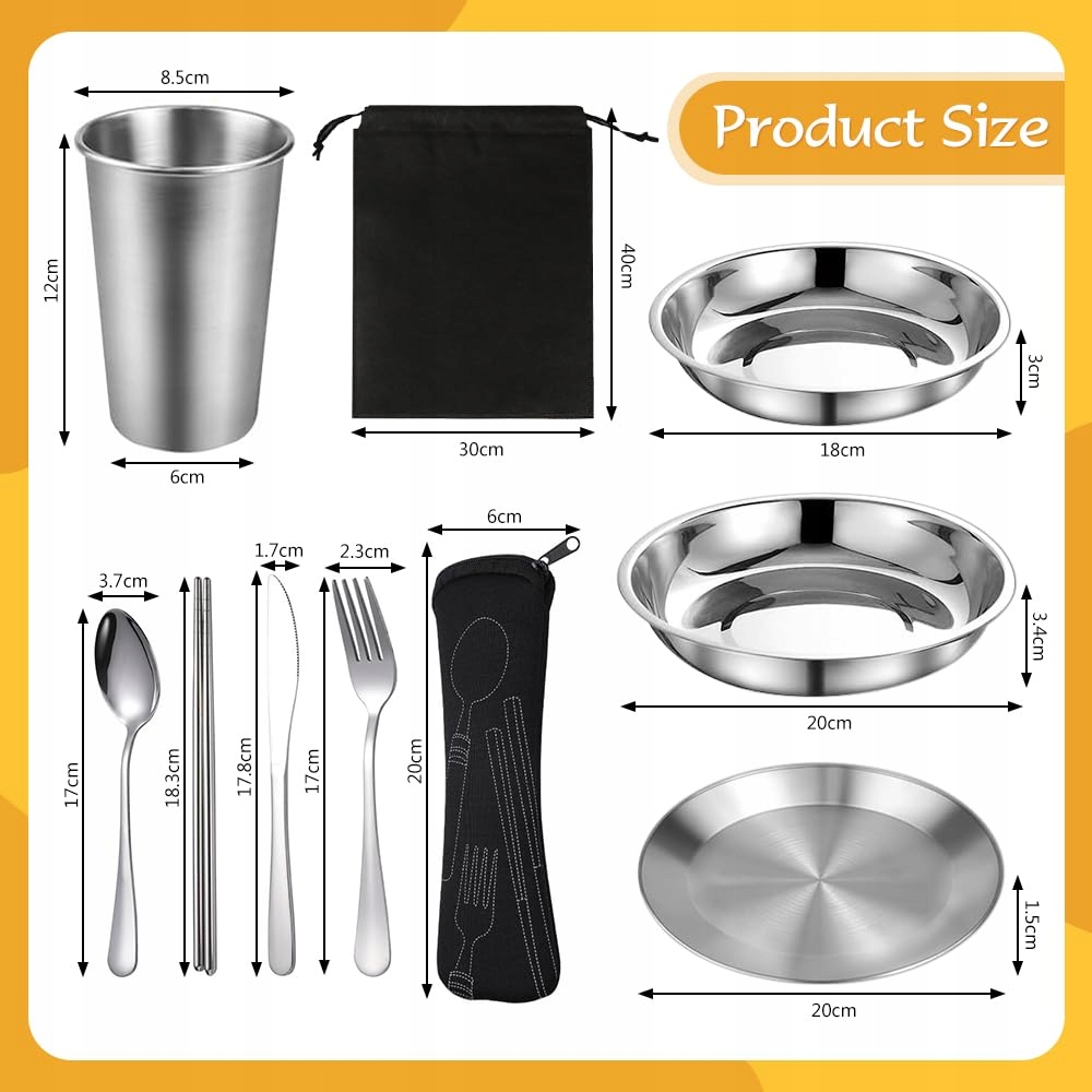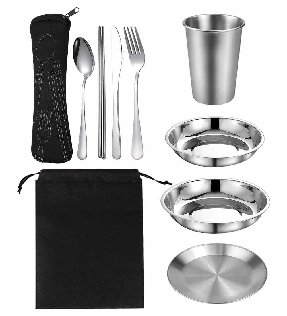 10 sztuk zestaw naczyń campingowych ze stali nierdzewnej, sztućce outdoor dla 2 osób z talerzem, talerzem, kubkiem, łyżką, widelcem, nożem, pałeczkami, naczyniami campingowymi na kemping, podróże, piknik