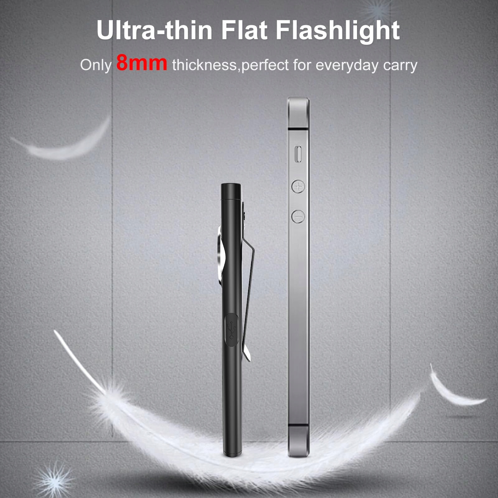 [Przenośna i trwała]Ta mała ładowalna lampa robocza jest wyposażona w port ładowania USB dla większej wygody. Jednocześnie jest ekstremalnie lekka, latarka ma wymiary około 10,6 x 2,5 x 0,8 cm i waży zaledwie około 35,8 g. Można ją wygodnie nosić w ręku lub w kieszeni, co czyni ją idealną do codziennego użytku.