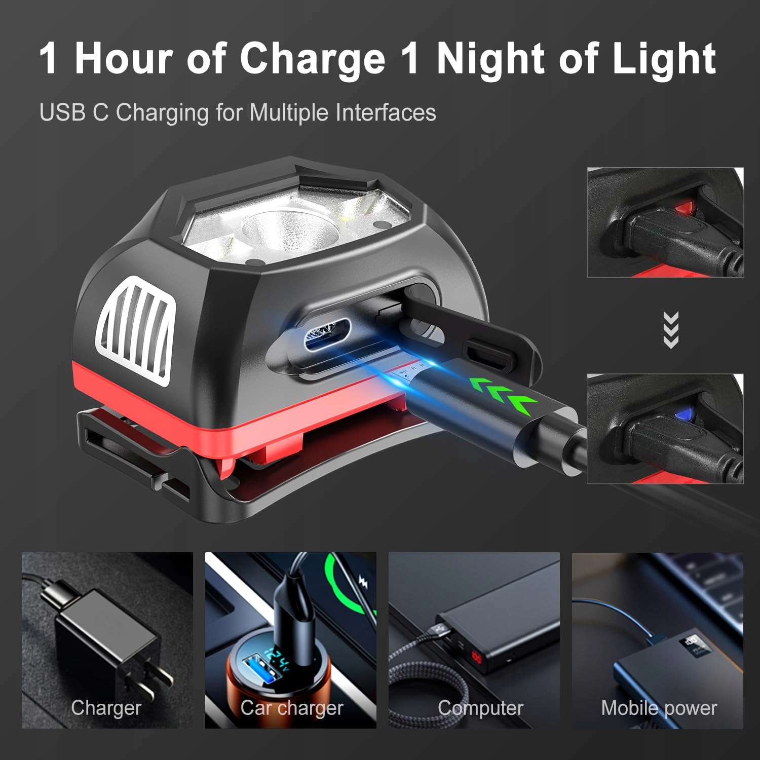 Odporność na warunki atmosferyczne: Czołówka ma wodoodporność IPX6, co oznacza, że jest odporna na silny deszcz, nie musisz się martwić o deszcz lub śnieg. Niezależnie od tego, czy kempingujesz, wędrujesz, eksplorujesz jaskinie czy uprawiasz inne aktywności na świeżym powietrzu, nasza wodoodporna czołówka jest idealnym towarzyszem.