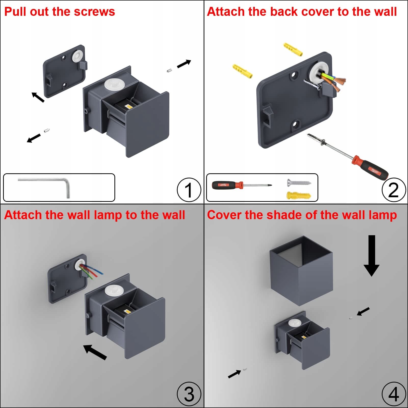 5.[Łatwa instalacja]W zestawie znajdują się narzędzia i materiały potrzebne do instalacji kinkietu, które można łatwo zamontować na powierzchni ściennej.