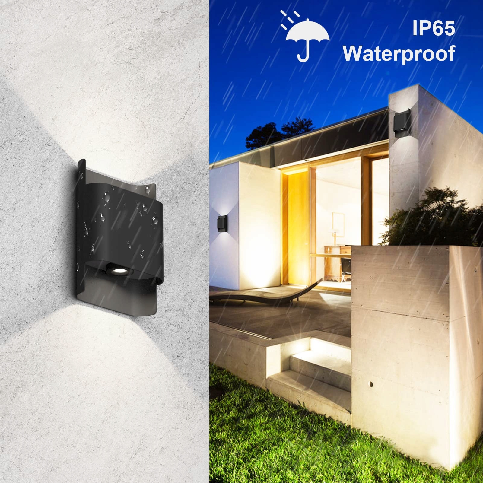 【Stopień ochrony IP65】Dzięki profesjonalnej klasie ochrony IP65 wnętrze lampy ściennej jest wodoodporne i pyłoszczelne, nawet jeśli jest długo wystawione na działanie warunków atmosferycznych.