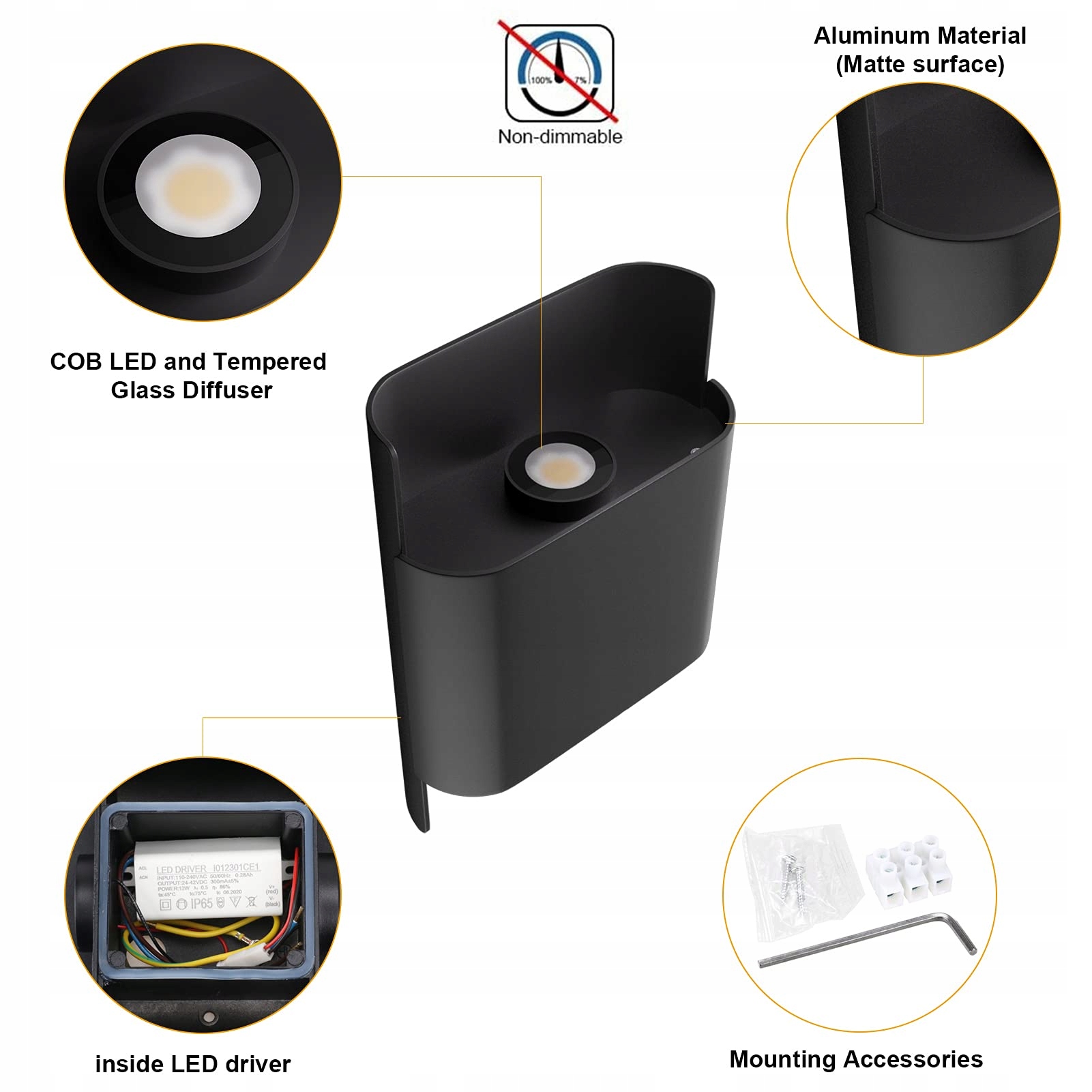 【Wysokiej jakości materiały】Lampy ścienne na zewnątrz wykonane są z wysokiej jakości LED-COB i czystego aluminium z matową powierzchnią. Lampy mają długą żywotność, są odporne na korozję, rdzę i przyjazne dla środowiska.