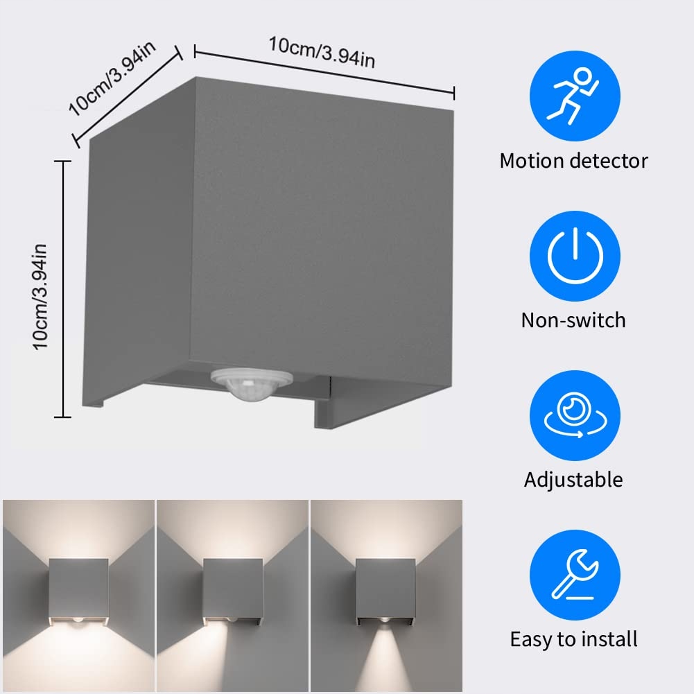 1.【Funkcja czujnika ruchu】Klighten lampa zewnętrzna z czujnikiem ruchu jest wyposażona w czujnik ruchu. W ciągu dnia lampy zewnętrzne są automatycznie wyłączane. W nocy lampa ścienna jest oświetlana przez czujnik ruchu. LED oświetlenie ścienne może wykrywać ruch ciała ludzkiego i automatycznie włączać i wyłączać lampę ścienną.