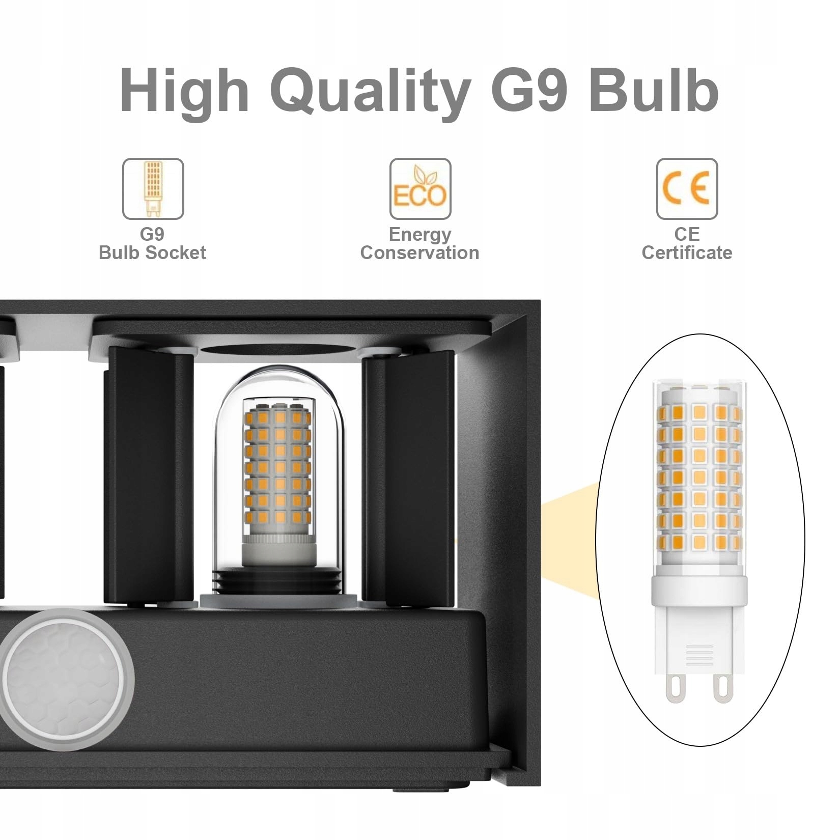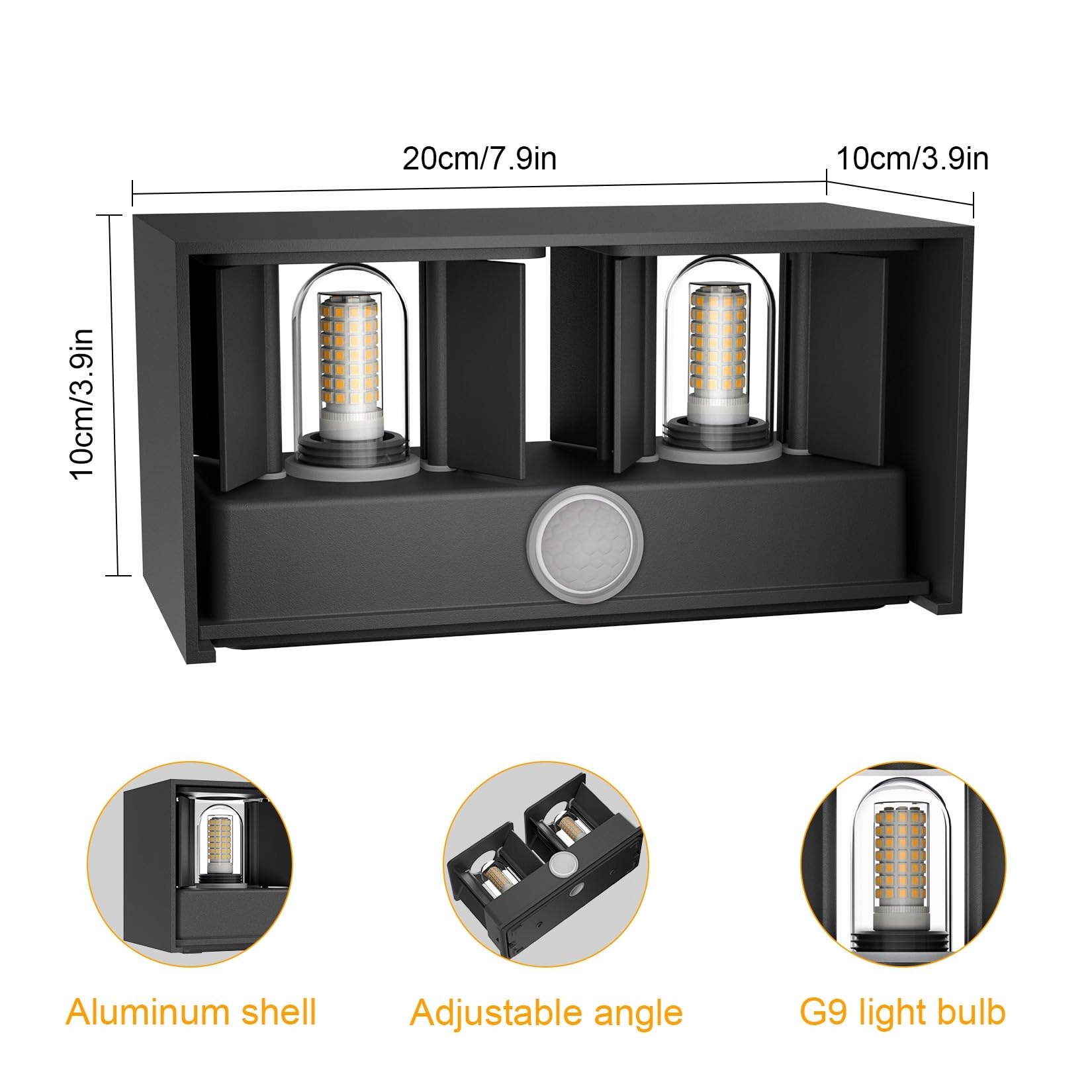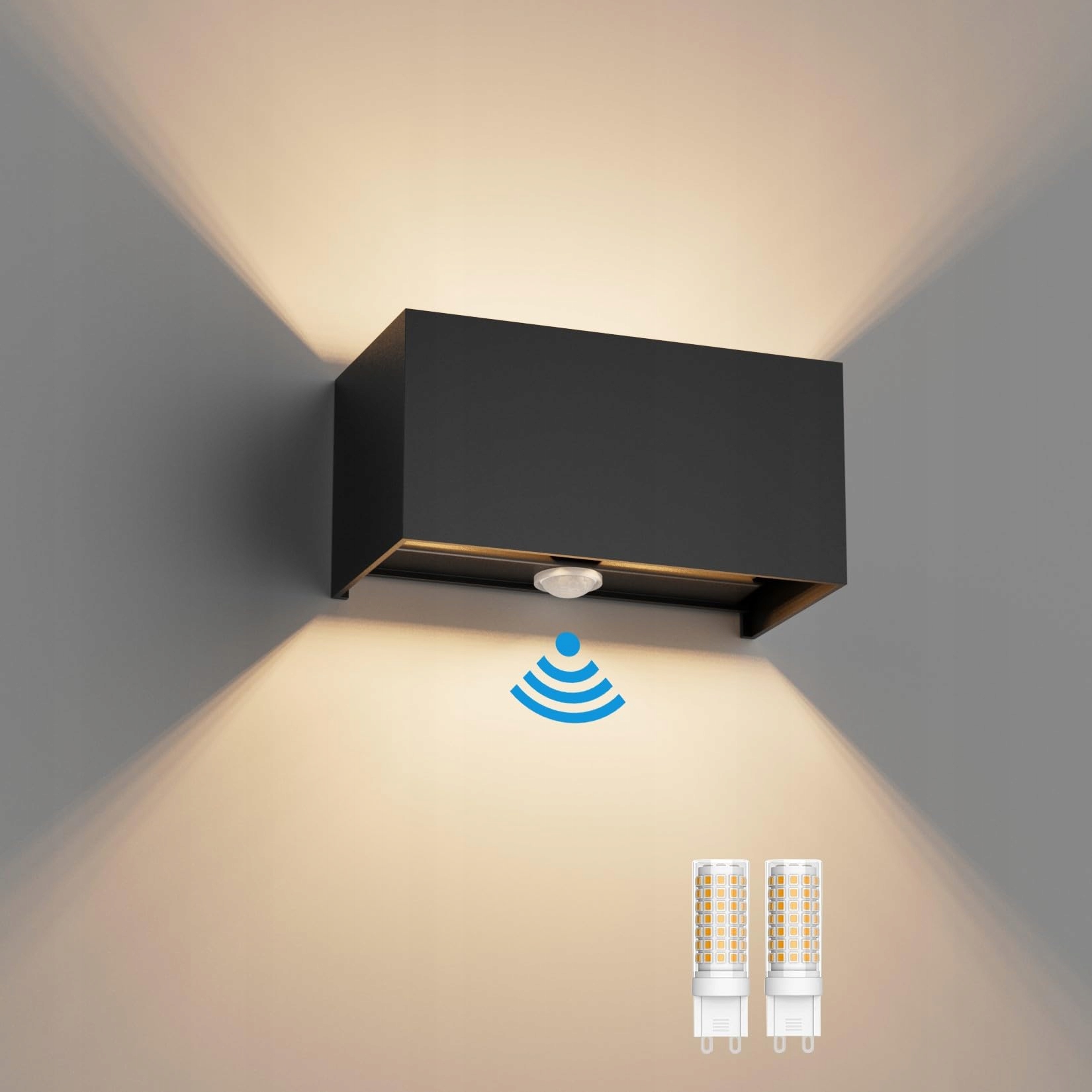 Klighten 18W zewnętrzna lampa ścienna z czujnikiem ruchu wewnętrzna/zewnętrzna 3000K lampa zewnętrzna z czujnikiem ruchu lampa ścienna regulowany kąt świecenia, z wymienną żarówką LED G9 (czarna)