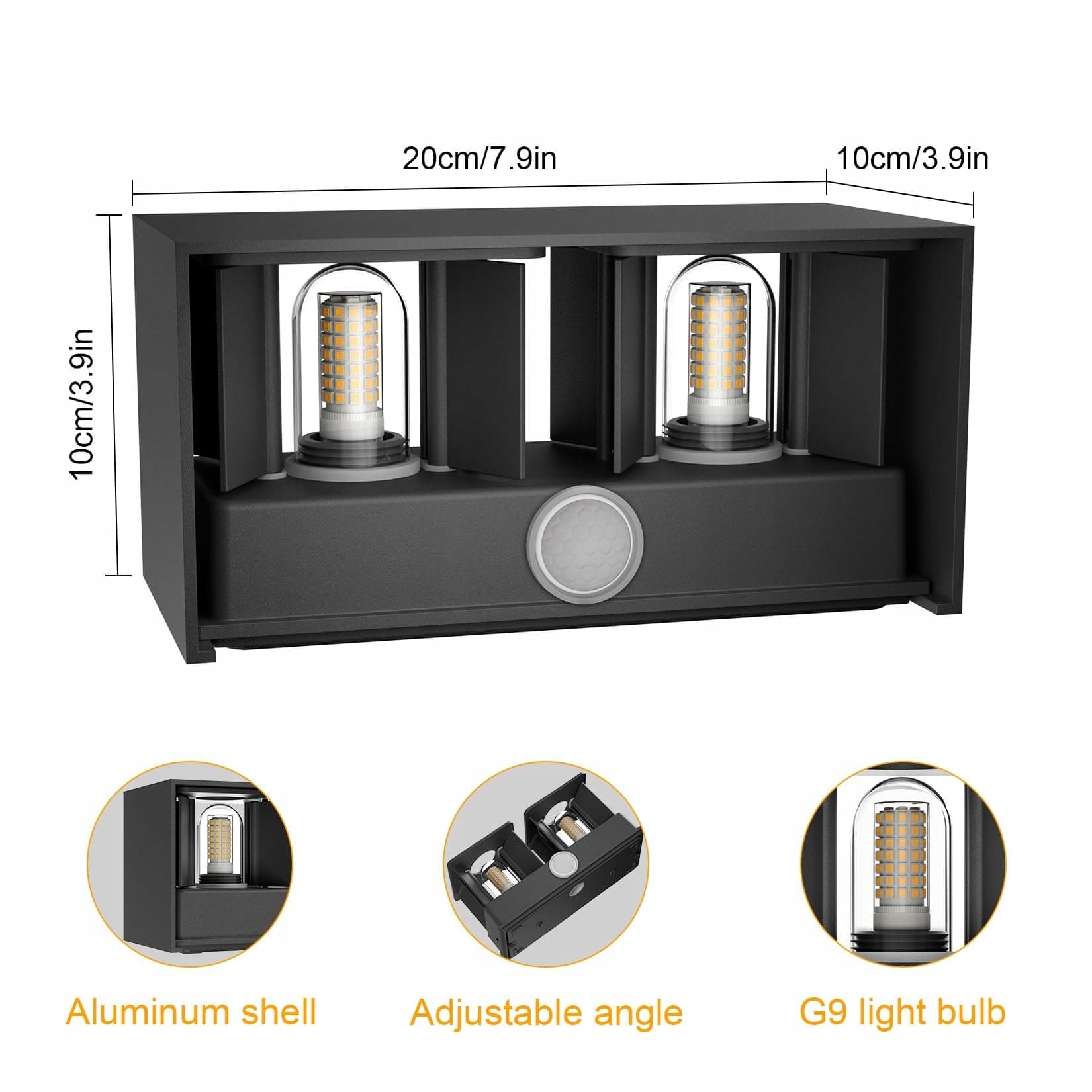 4.【Informacje o produkcie】 Korpus lampy ściennej LED: 20 x 10 x 10 cm. Rodzaj żarówki: 9W G9 LED oświetla 650LM (na żarówkę) (może być wymieniona samodzielnie).