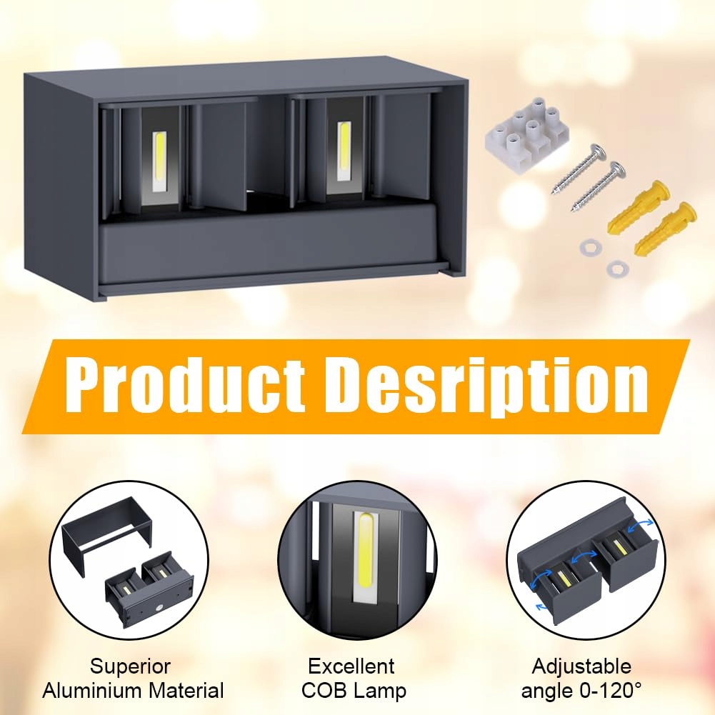 5[Łatwa instalacja] Dostarczany jest z narzędziami i materiałami potrzebnymi do zainstalowania kinkietu i można go łatwo zamontować na powierzchni ściany. Zaleca się, aby instalację prowadzili profesjonaliści.