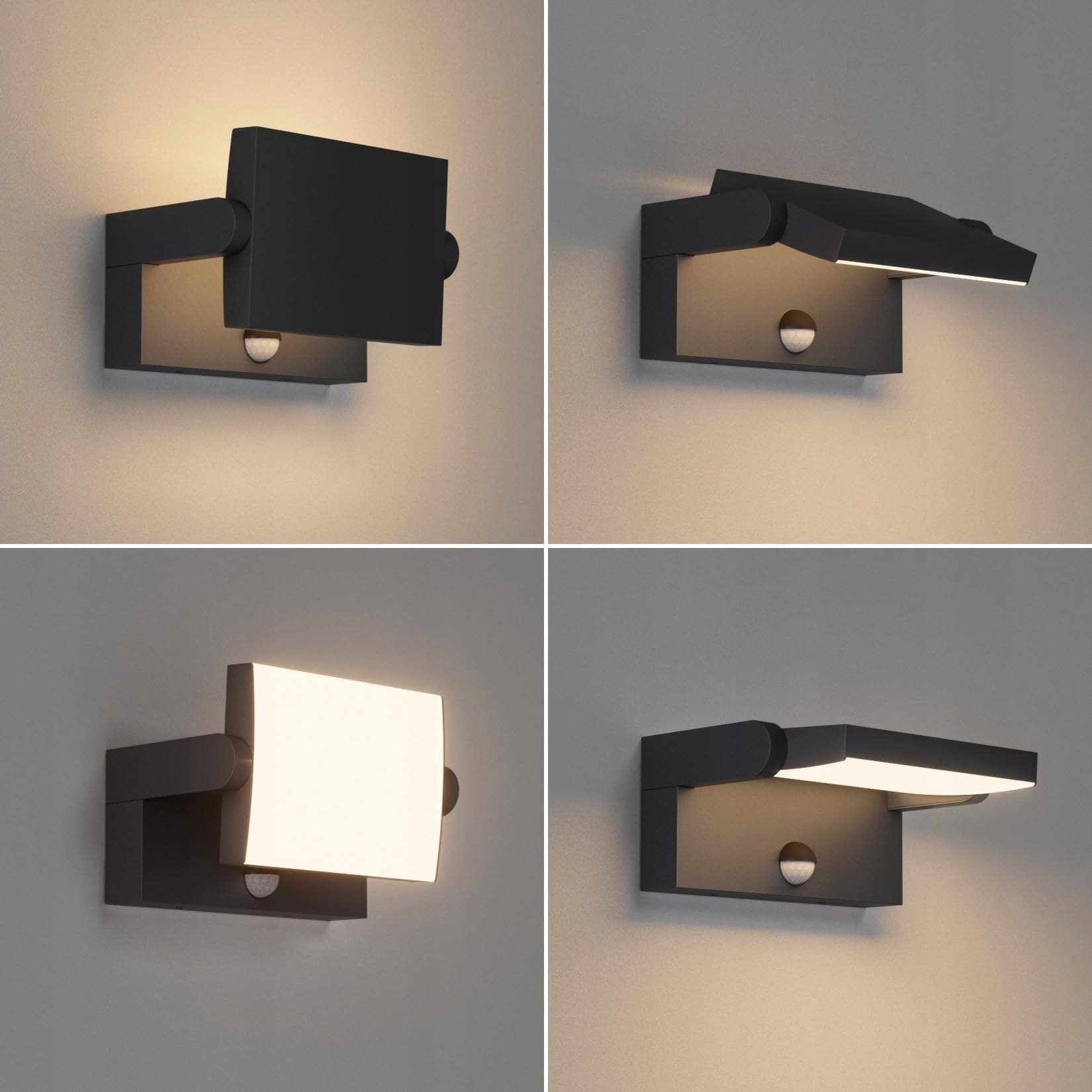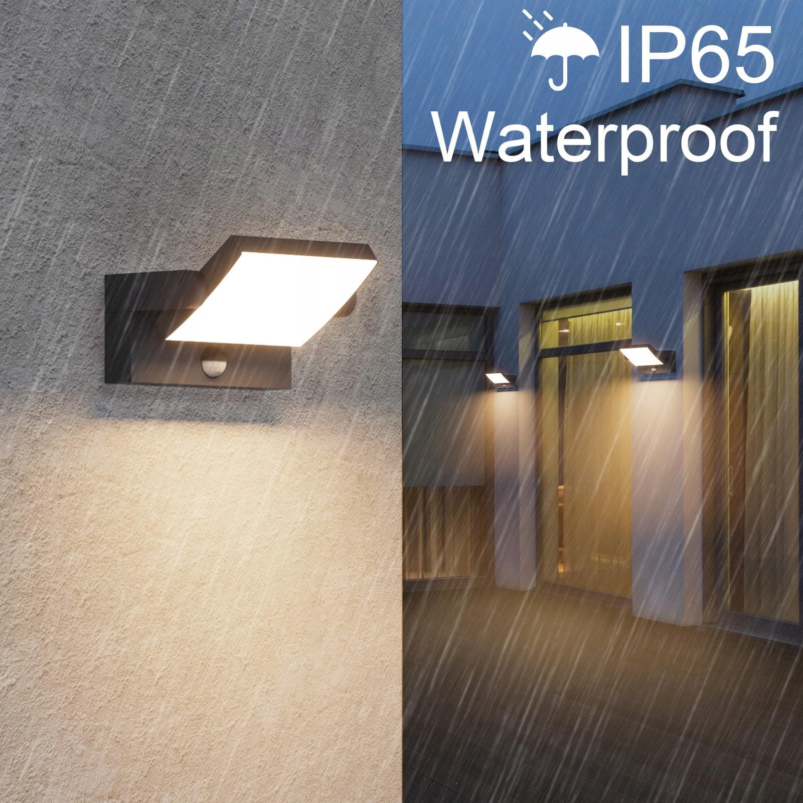 Klighten 2 sztuki 24W zewnętrzna lampa ścienna z czujnikiem ruchu IP65 lampa ścienna wewnętrzna z obrotowym panelem LED, lampa zewnętrzna na balkon wejście, czarna, ciepła biel 3000K