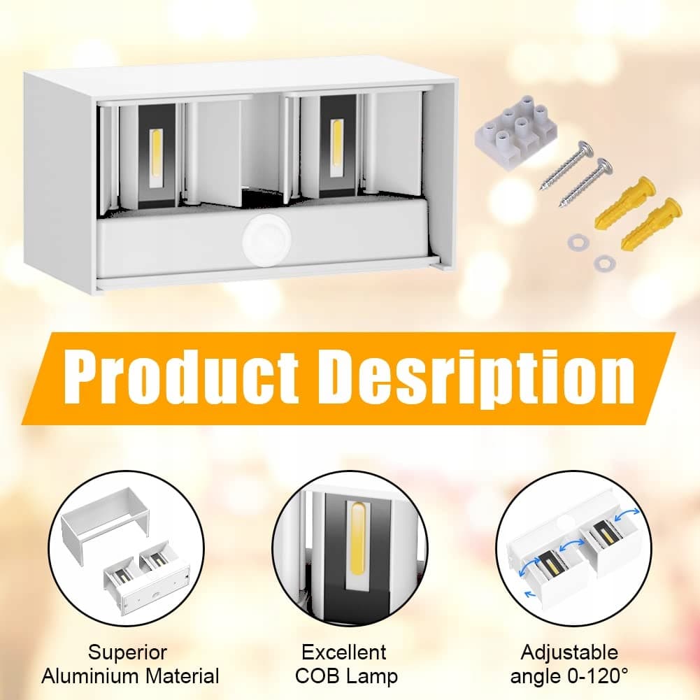 [Bardziej naukowy design]Nowoczesna 24W LED lampa ścienna z czujnikiem ruchu wykonana jest z wysokiej jakości aluminium, a obudowa pokryta jest farbą, która zapobiega deformacji i korozji. Dzięki temu jest nie tylko wodoodporna i odporna na rdzę, ale również zapobiega zarysowaniom ciała ludzkiego przez krawędzie i narożniki.