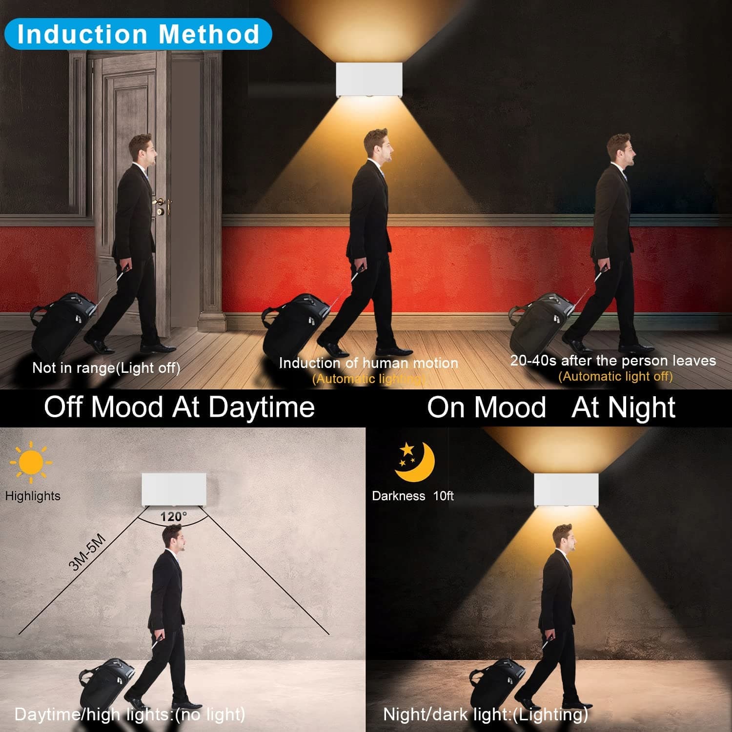 [Lampa zewnętrzna z czujnikiem ruchu]Klighten LED lampa ścienna zewnętrzna jest wyposażona w czujnik ruchu. W ciągu dnia lampa ścienna jest automatycznie wyłączana. W nocy lampa ścienna jest oświetlana przez czujnik ruchu. LED oświetlenie ścienne może wykrywać ruch ciała ludzkiego i automatycznie włączać i wyłączać lampę ścienną.