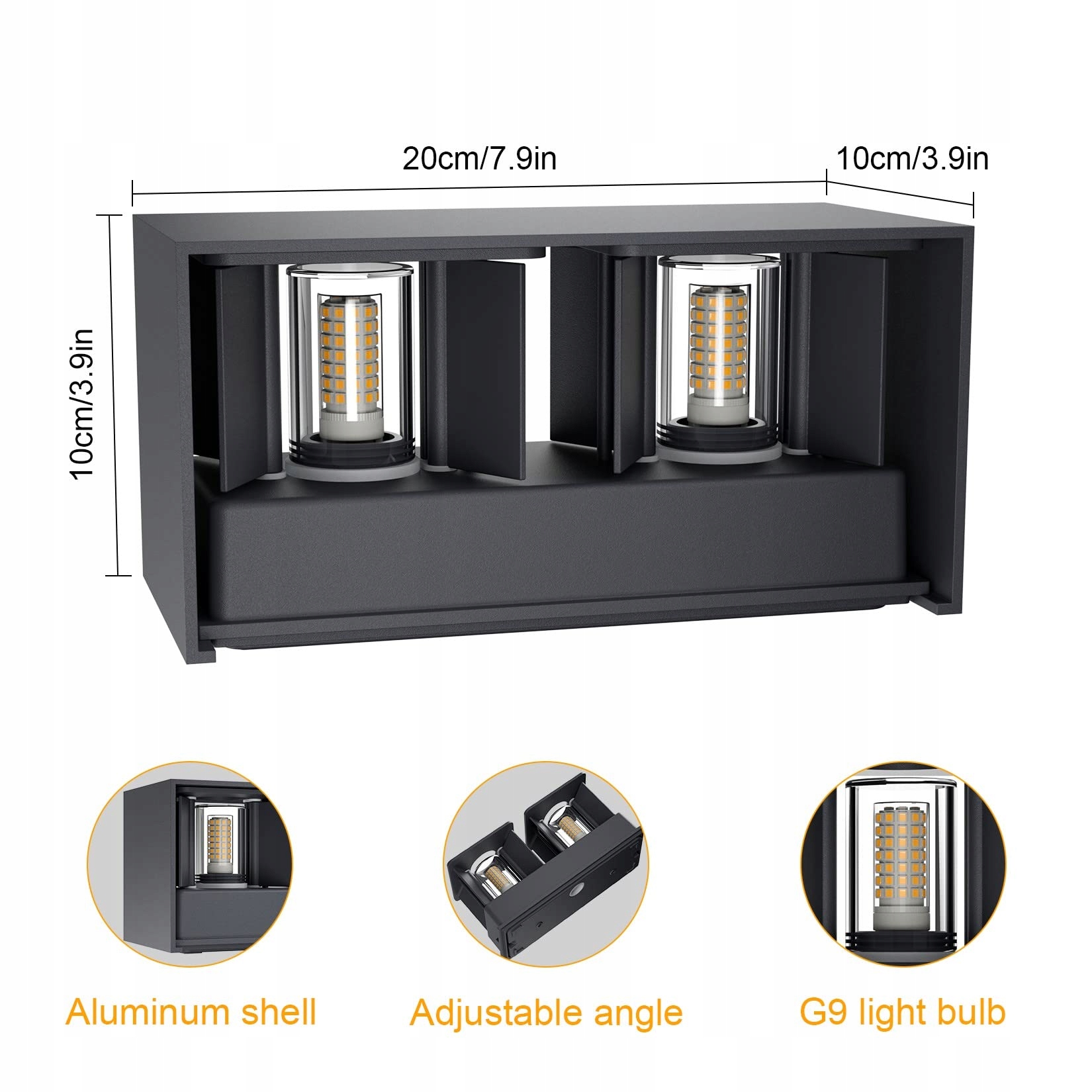 3.【Informacje o produkcie】 Korpus kinkietu LED: 20 x 10 x 10 cm. Typ żarówki: 9W LED G9, 650LM (na żarówkę) (można wymienić samodzielnie).