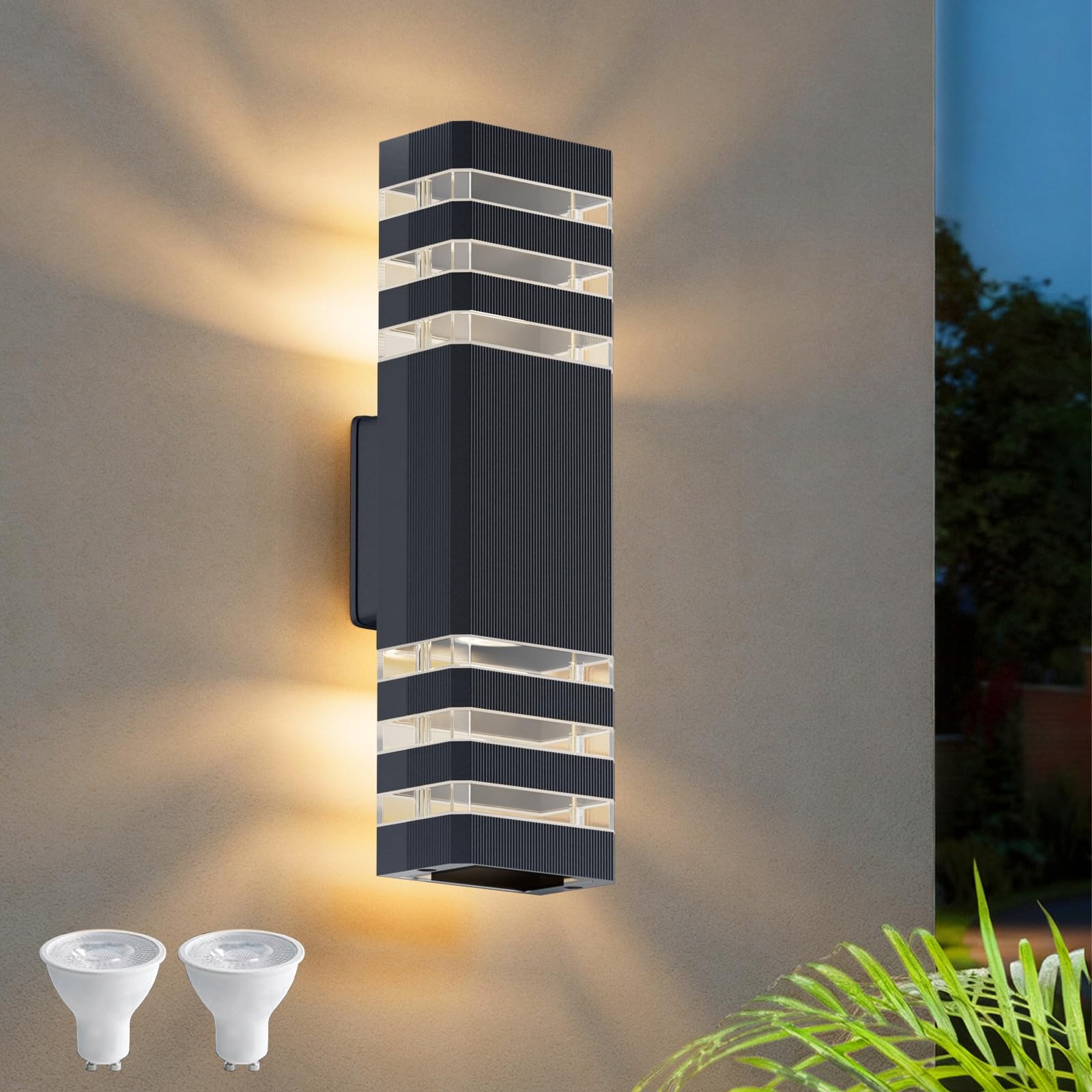Klighten Lampa zewnętrzna na ścianę, IP65 Lampa zewnętrzna kinkiet GU10 Up Down 3000K, LED kinkiet lampa ścienna na zewnątrz - Lampa zewnętrzna oświetlenie garażu i korytarza | Antracyt