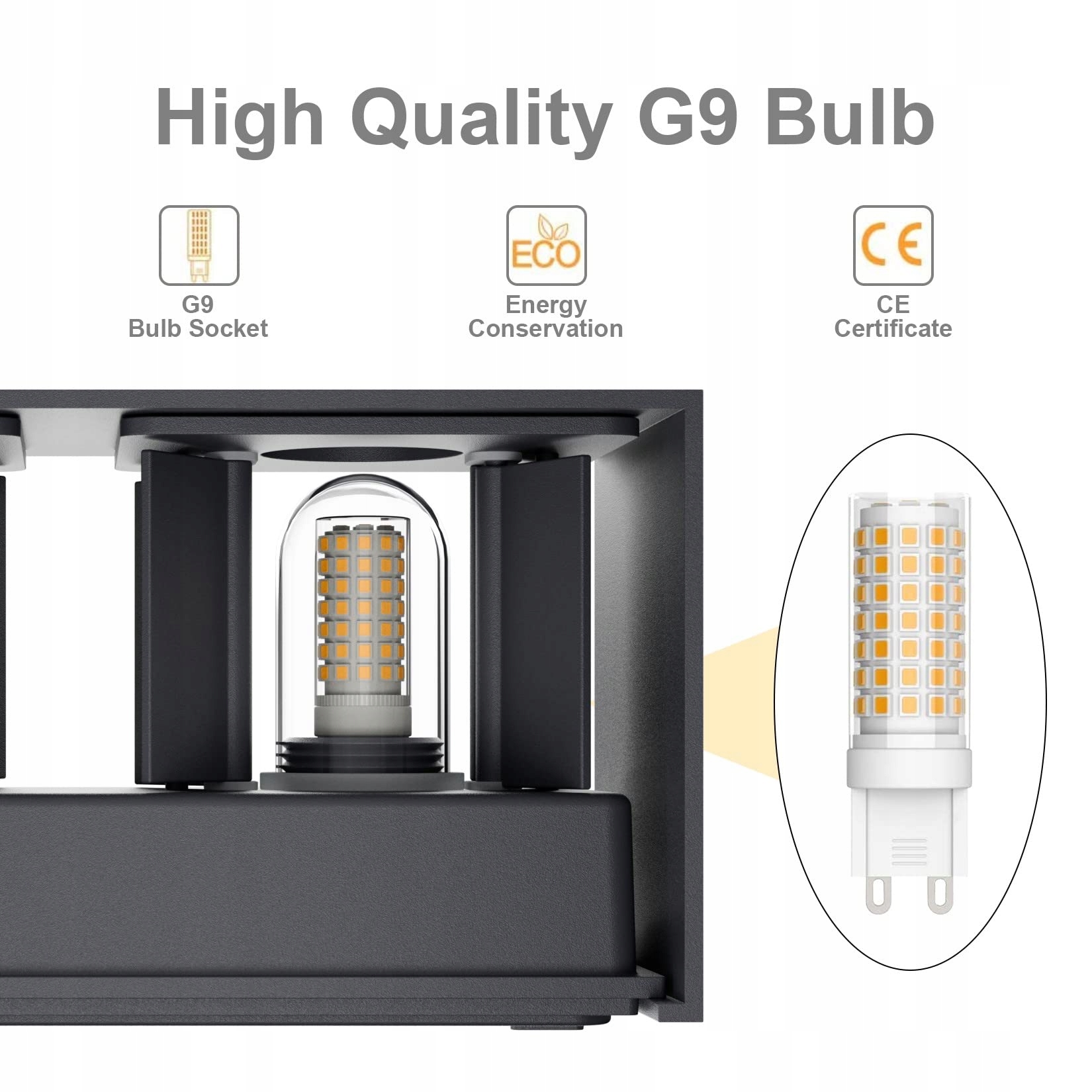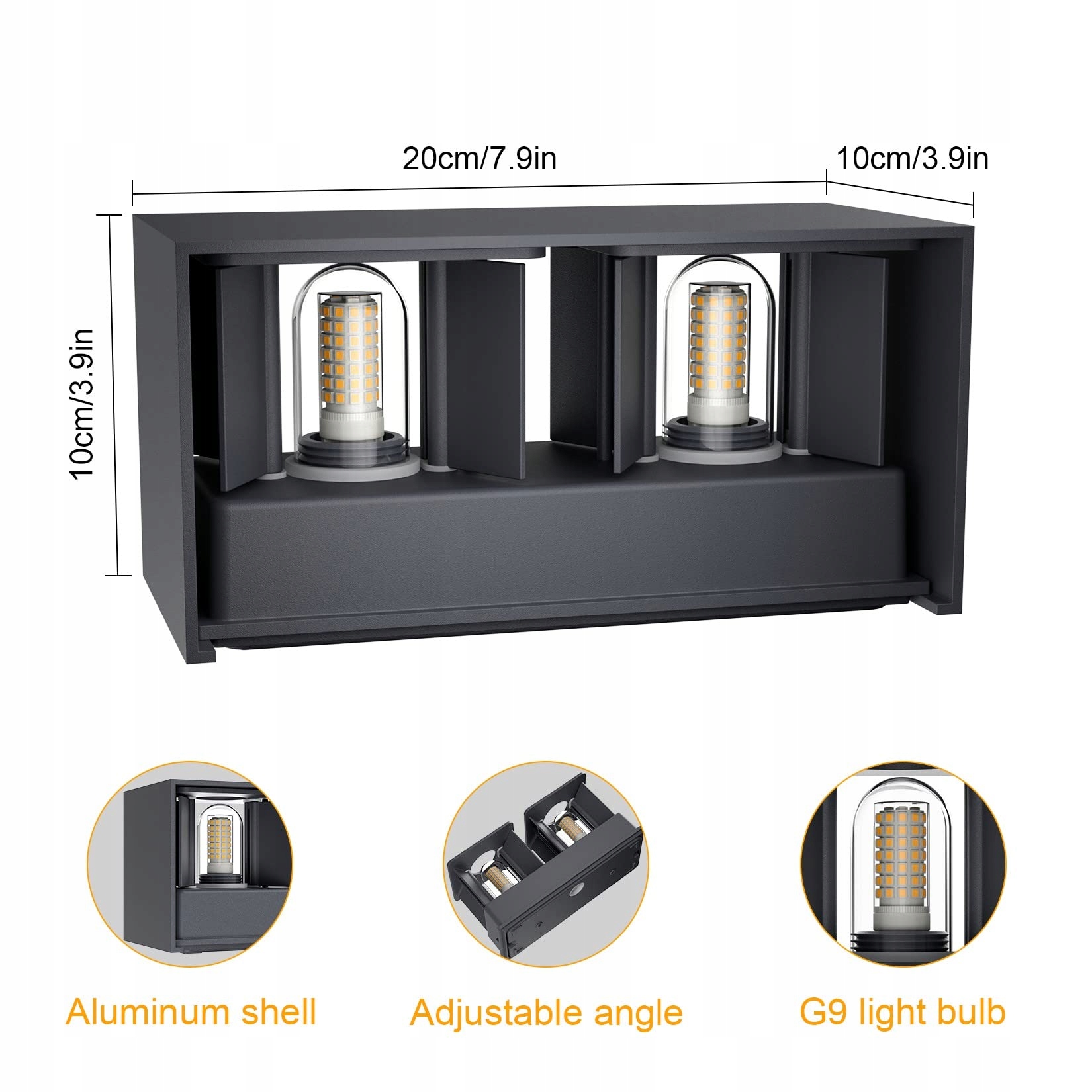 3.[Informacje o produkcie] Korpus kinkietu LED: 20 x 10 x 10 cm. Rodzaj żarówki: 9W G9 LED oświetla 650LM (na żarówkę) (można wymienić samodzielnie).
