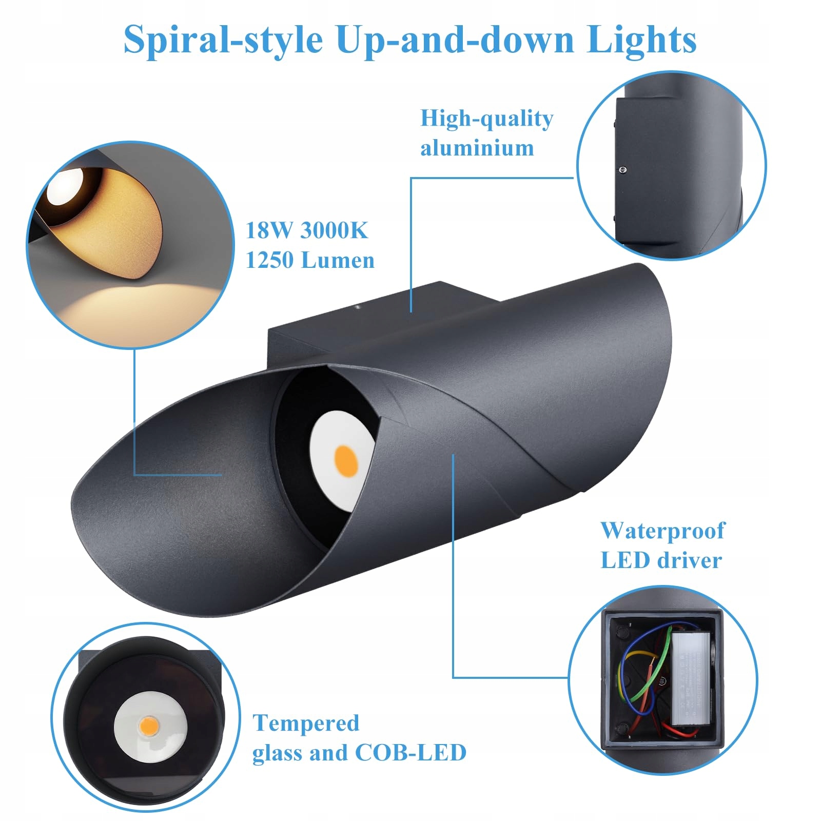 Klighten LED Lampa ścienna na zewnątrz i do wnętrz 18W 1250 lumenów, oświetlenie góra i dół IP65 Lampa ścienna z aluminium na wejście, taras, korytarz, ciepła biel 3000K, antracyt
