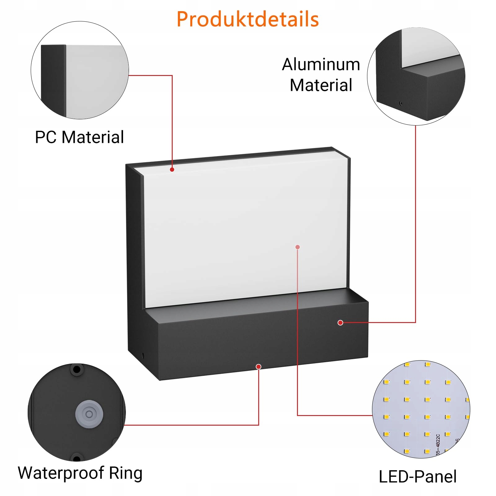 【Stopień ochrony IP65】: Ta zewnętrzna lampa ścienna wykonana z aluminium i poliwęglanu bez trudu wytrzymuje deszcz, opady śniegu i ekstremalne warunki pogodowe na zewnątrz.