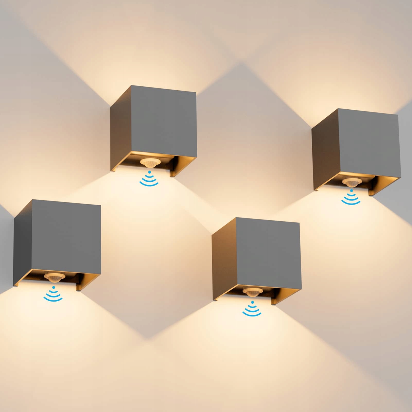 Klighten 12W Lampa zewnętrzna z czujnikiem ruchu, 4 szt. lamp zewnętrznych z regulowanym kątem świecenia, lampa ścienna z czujnikiem ruchu na zewnątrz/wewnątrz do ogrodu, IP65, 3000K, ciemnoszara