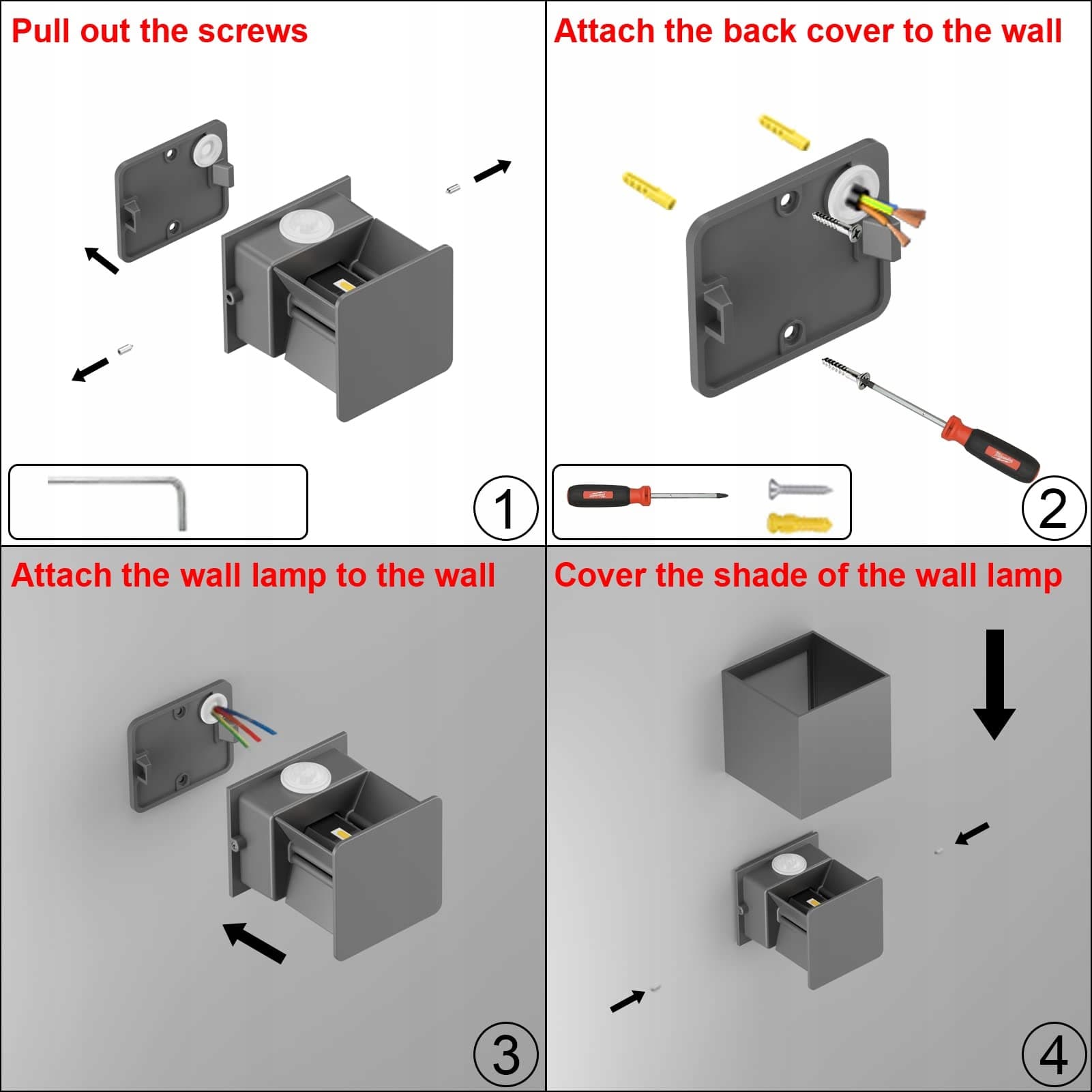5.【Łatwa instalacja】W zestawie znajdują się narzędzia i materiały potrzebne do montażu lamp zewnętrznych, które można łatwo zamontować na powierzchni ściany.