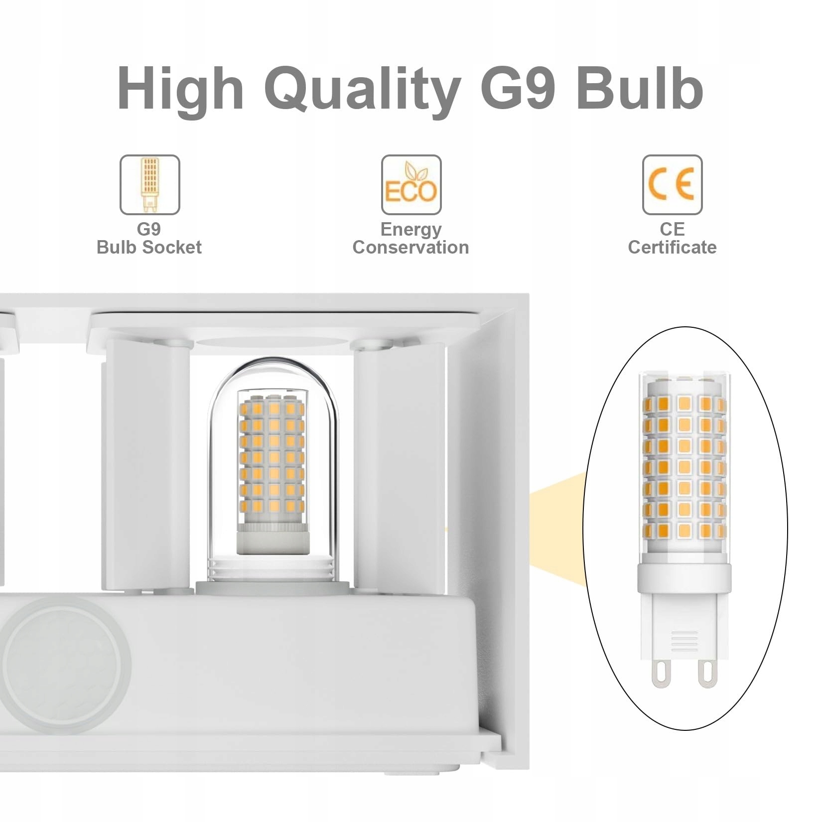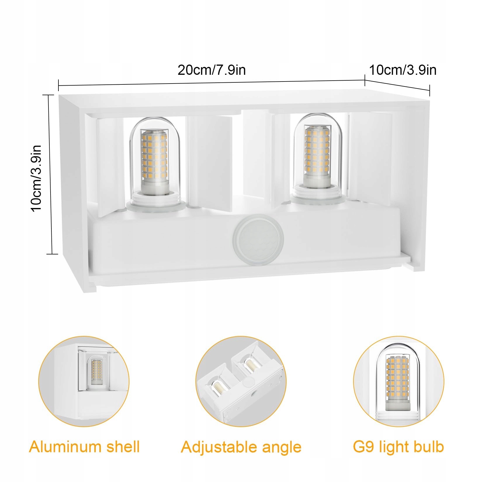 4.【Informacje o produkcie】 Korpus lampy ściennej LED: 20 x 10 x 10 cm. Rodzaj żarówki: 9W G9 LED oświetla 650LM (na żarówkę) (może być wymieniona samodzielnie).