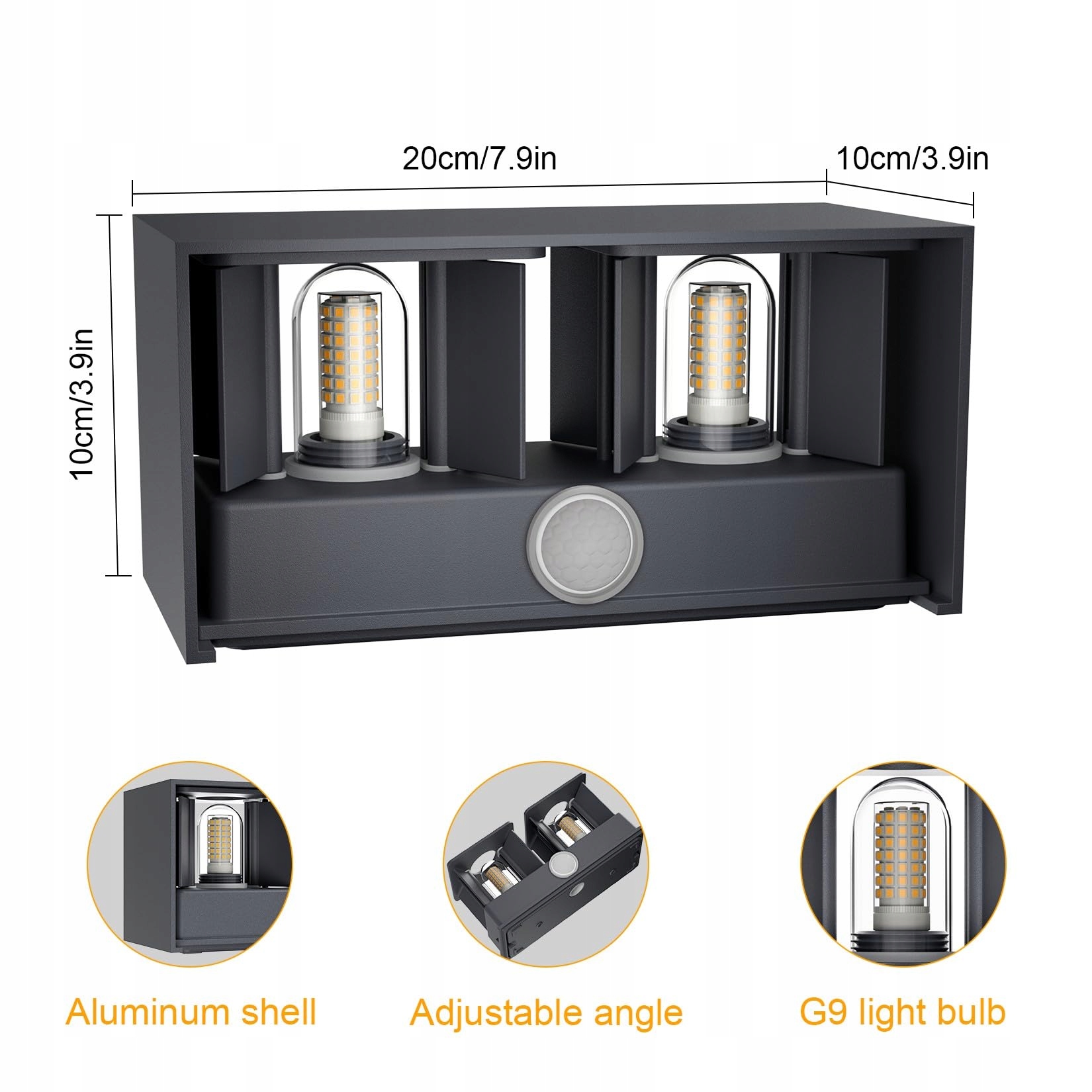 Klighten 18W zewnętrzna lampa ścienna z czujnikiem ruchu wewnętrzna/zewnętrzna 3000K lampa zewnętrzna z czujnikiem ruchu lampa ścienna regulowany kąt świecenia, z wymienną lampą LED G9 (antracyt)