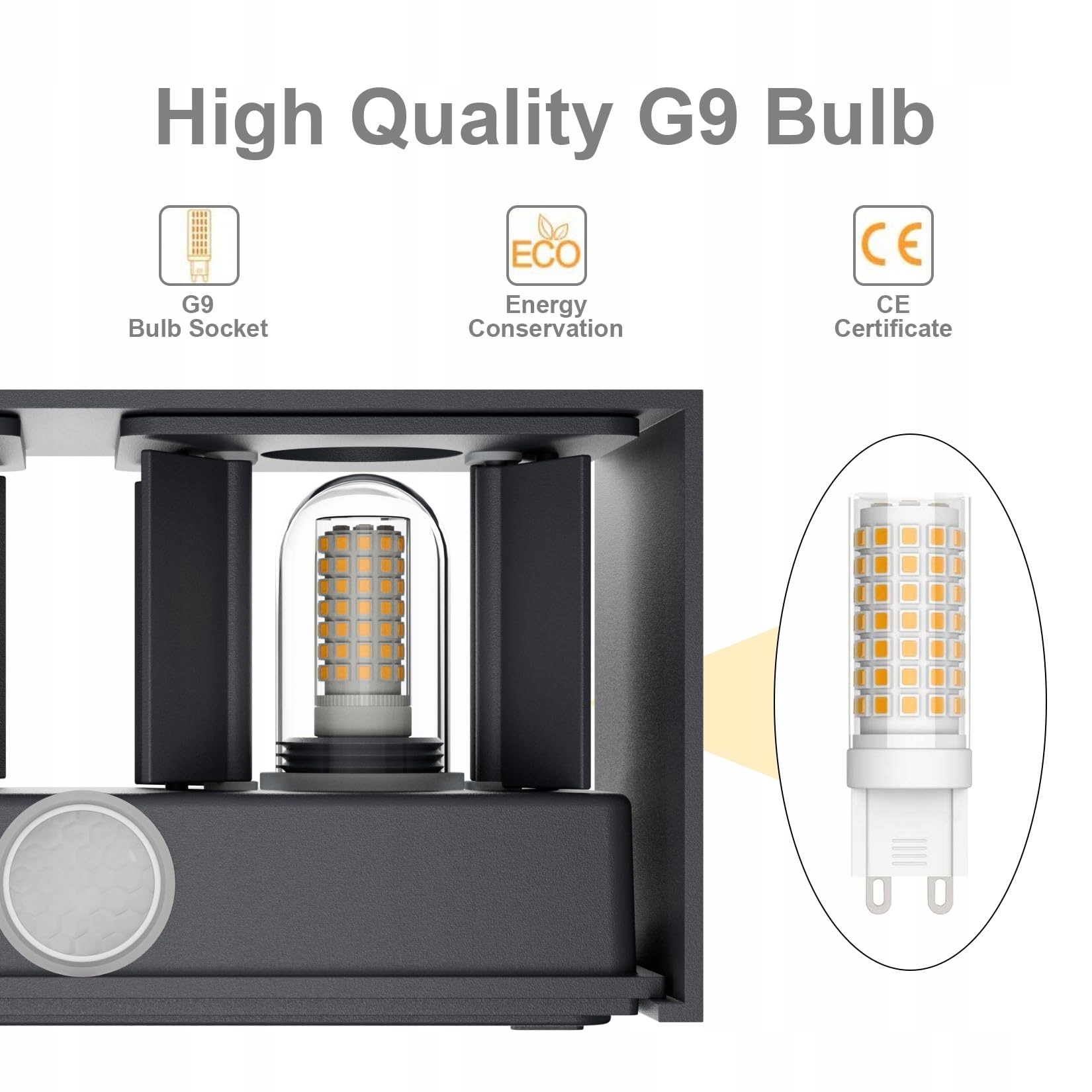 KLIGHTEN Lampa Zewnętrzna 18W z Czujnikiem Ruchu 3000K LED G9 Regulowana