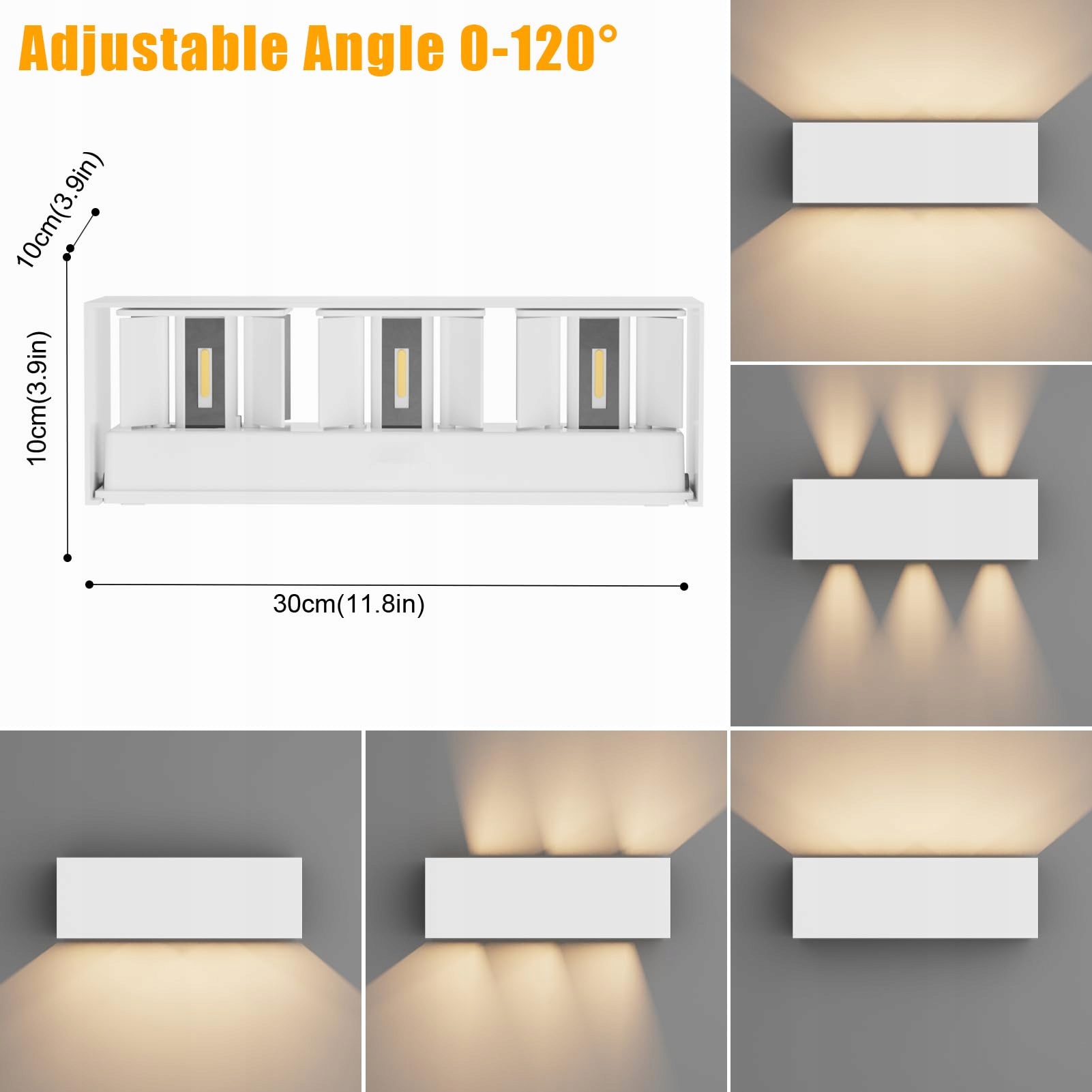 Klighten 30W lampa zewnętrzna, kinkiet zewnętrzny, lampa zewnętrzna na ścianę góra-dół, IP65, kinkiety wewnętrzne/zewnętrzne z regulowanym kątem świecenia, do salonu, ogrodu, ciepła biel 3000K, biały