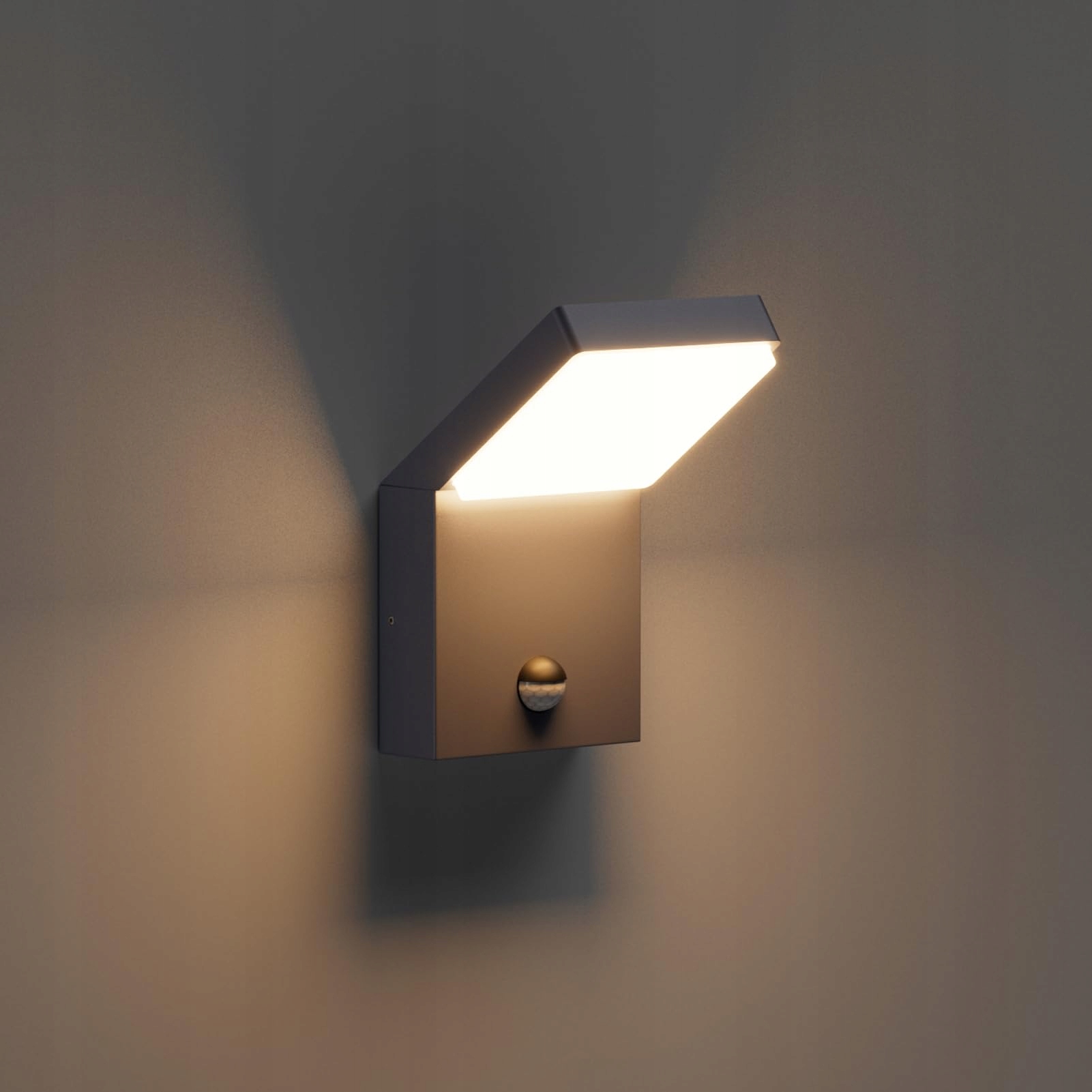 Klighten zewnętrzna lampa ścienna LED z czujnikiem ruchu, 24W lampa zewnętrzna IP65 wodoodporna lampa ścienna wewnętrzna zewnętrzna lampa ścienna, lampa zewnętrzna do ogrodu tarasu wejścia, antracyt, ciepła biel 3000K