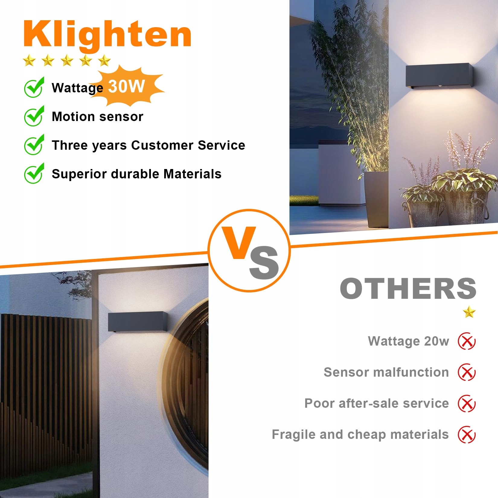 Klighten 30W Lampa ścienna zewnętrzna z czujnikiem ruchu, lampa zewnętrzna z regulowanym kątem światła, LED lampa ścienna góra-dół na zewnątrz/wewnątrz do ogrodu, IP65, 4000K, antracyt